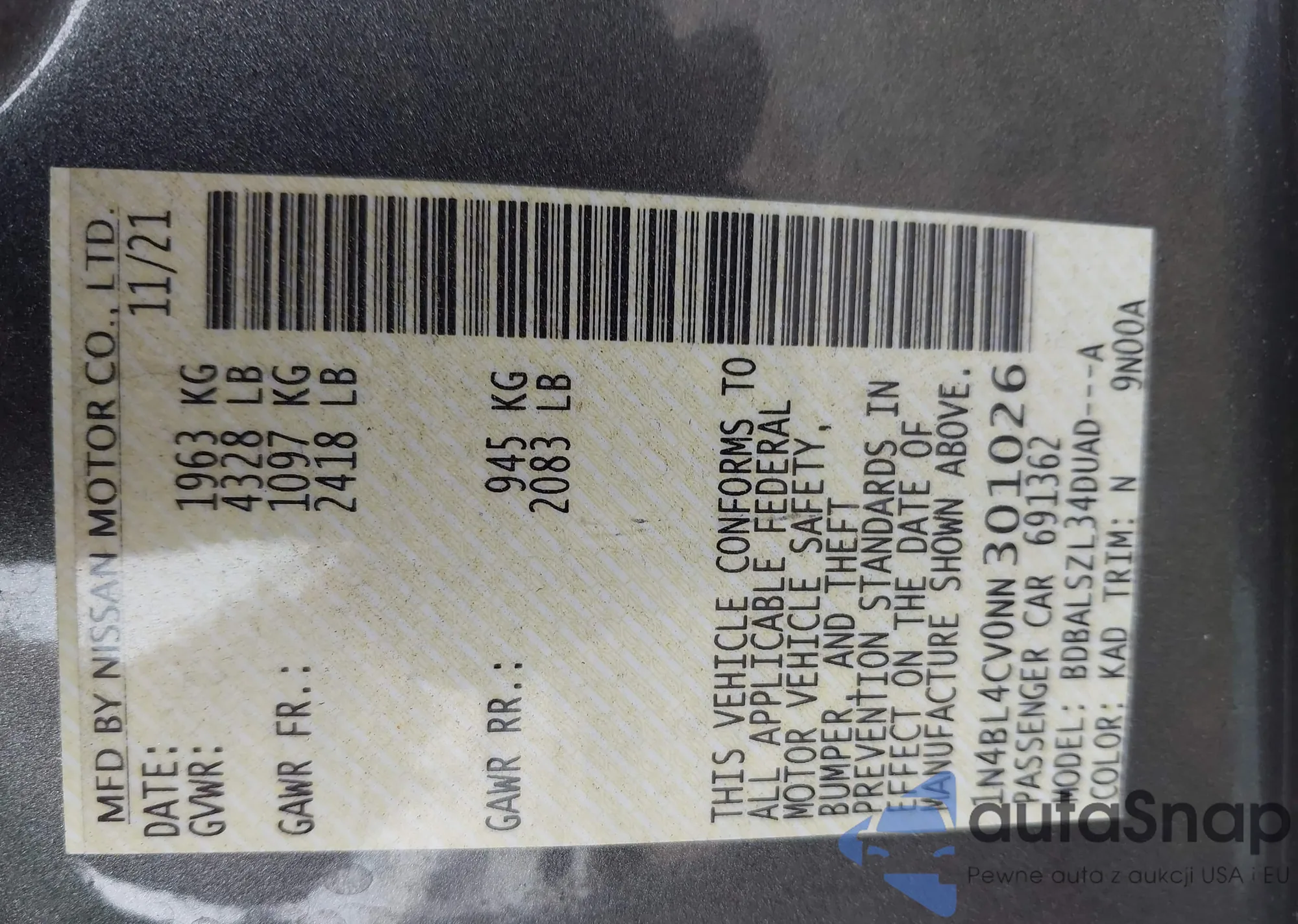 • VIN 1G1ZD5ST8JF272481