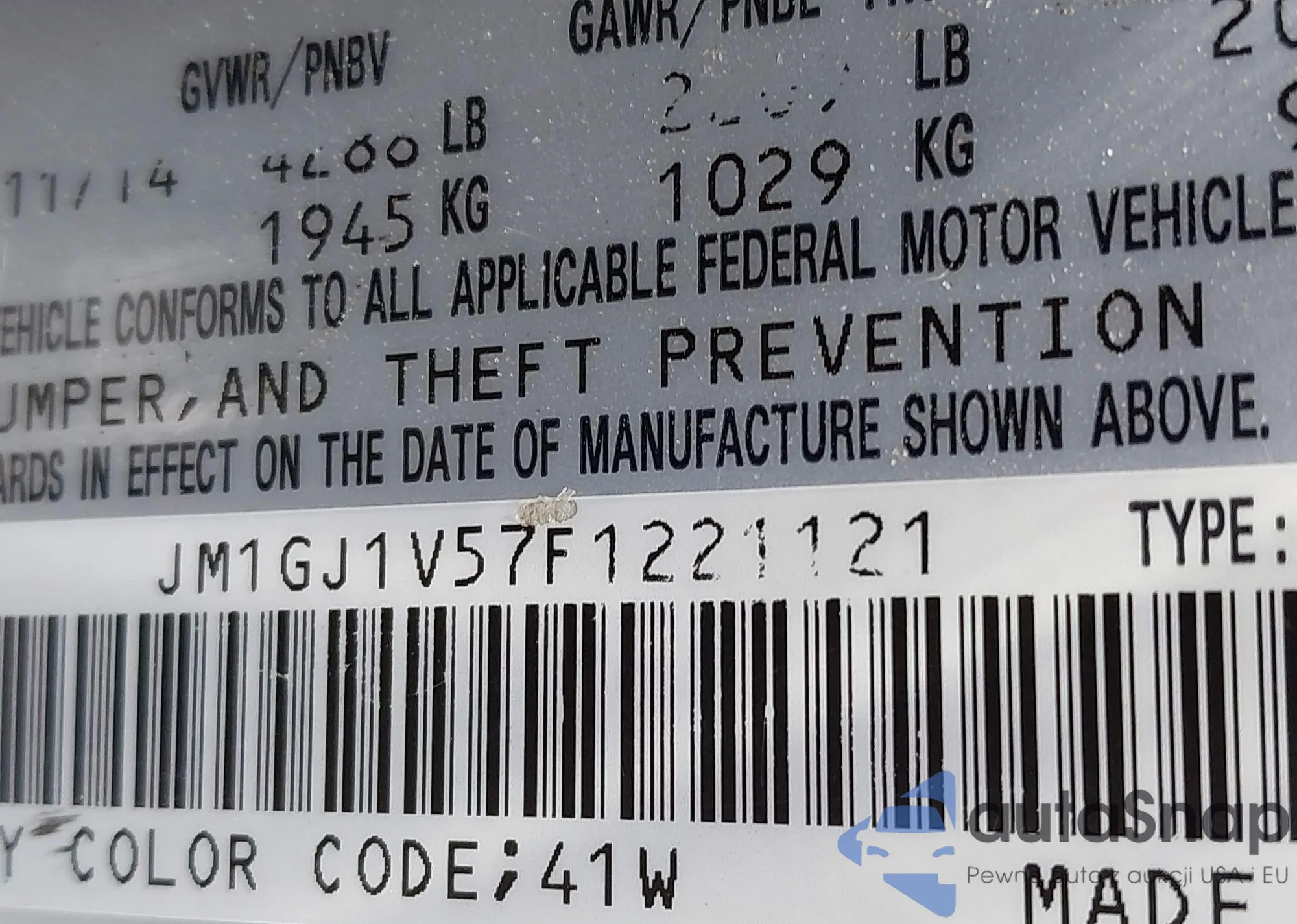 LOT: 42128936 VIN: JM1DKFB70K1451421