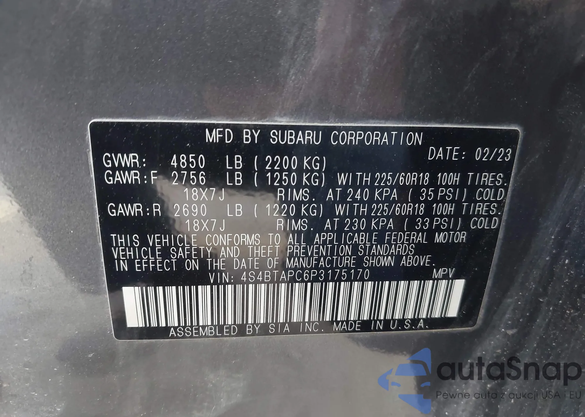 LOT: 42501753 VIN: 4S4BTAPC6P3175170