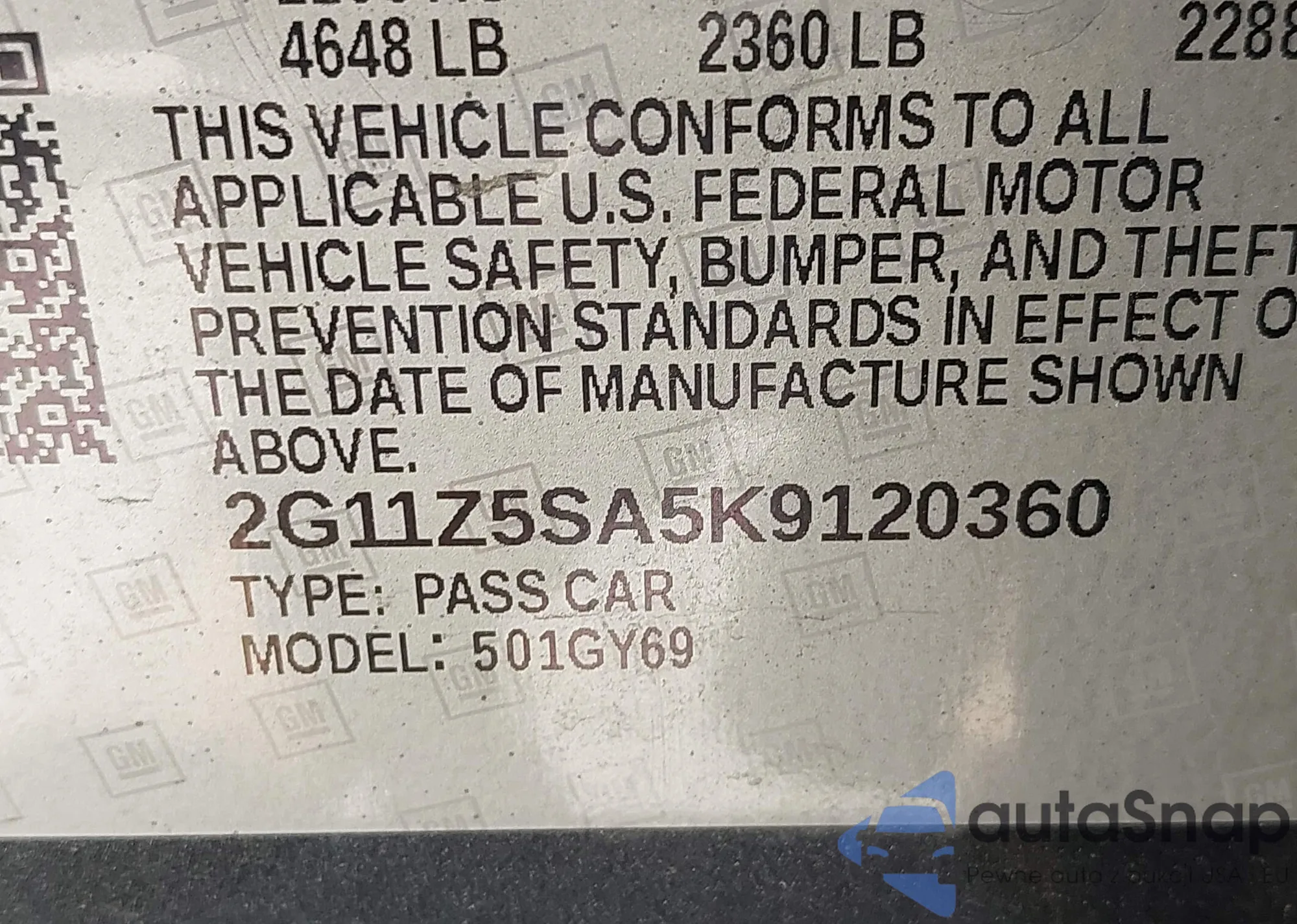 • VIN 2G4GL5EX4F9182806