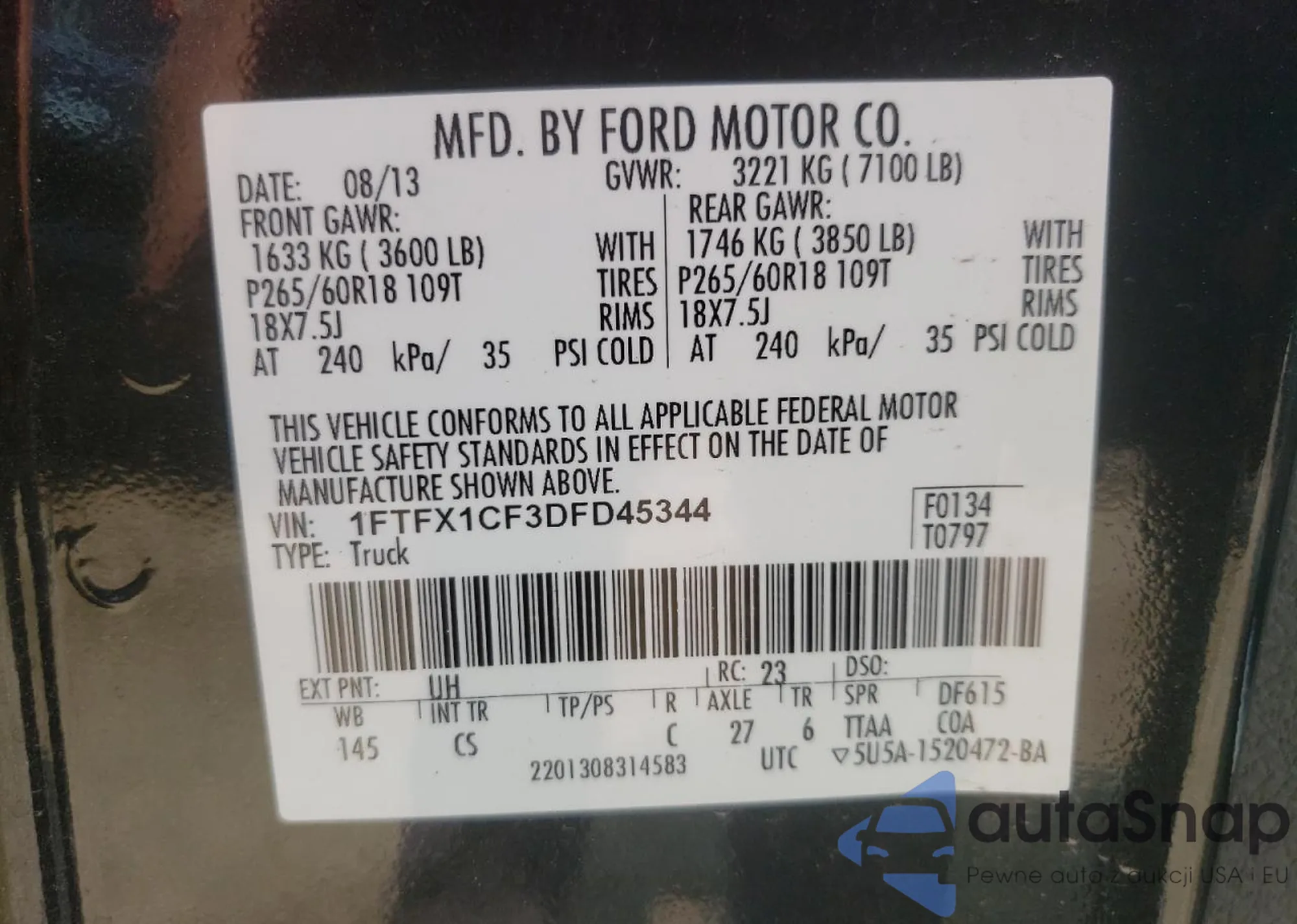 LOT: 71118294 VIN: 1FTFX1CF3DFD45344