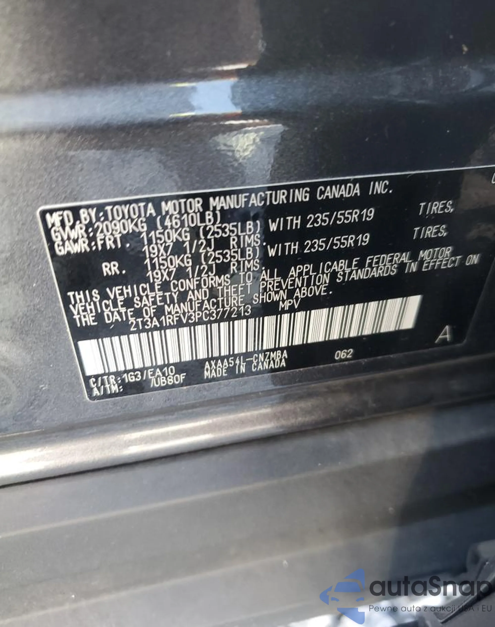 • VIN 2T3A1RFV3PC377213