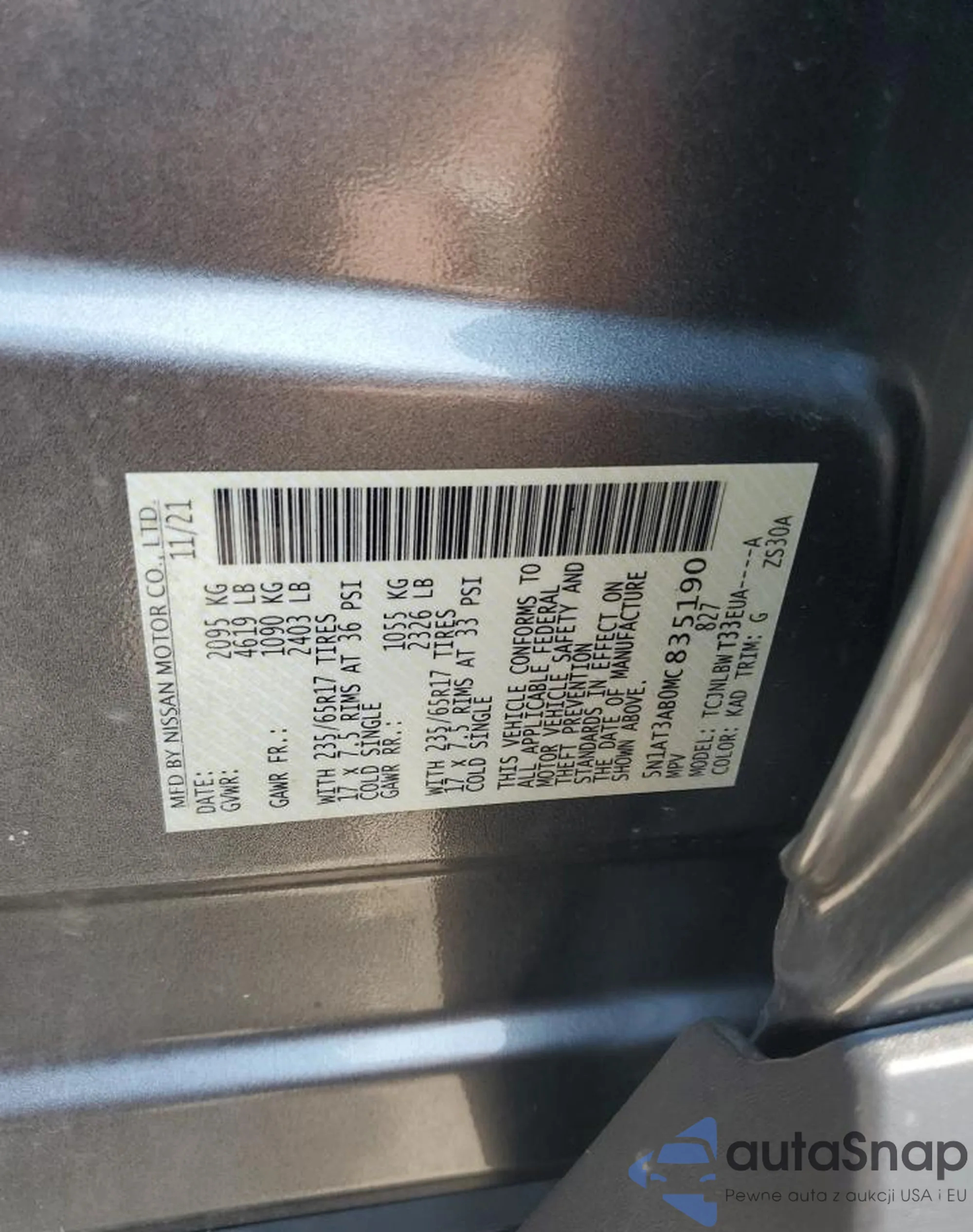 LOT: 60321925 VIN: 5N1AT3AB0MC835190