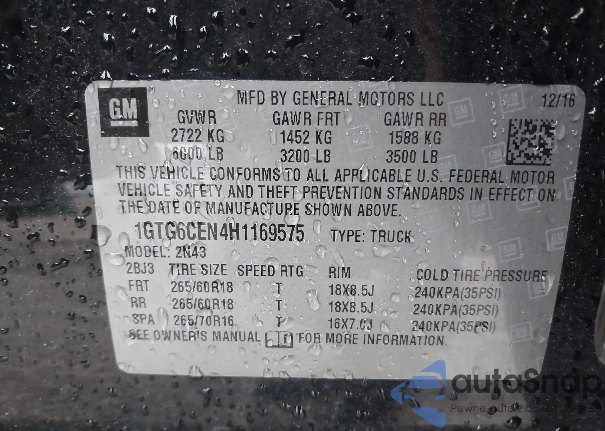 LOT: 42311363 VIN: 1GTG6CEN4H1169575
