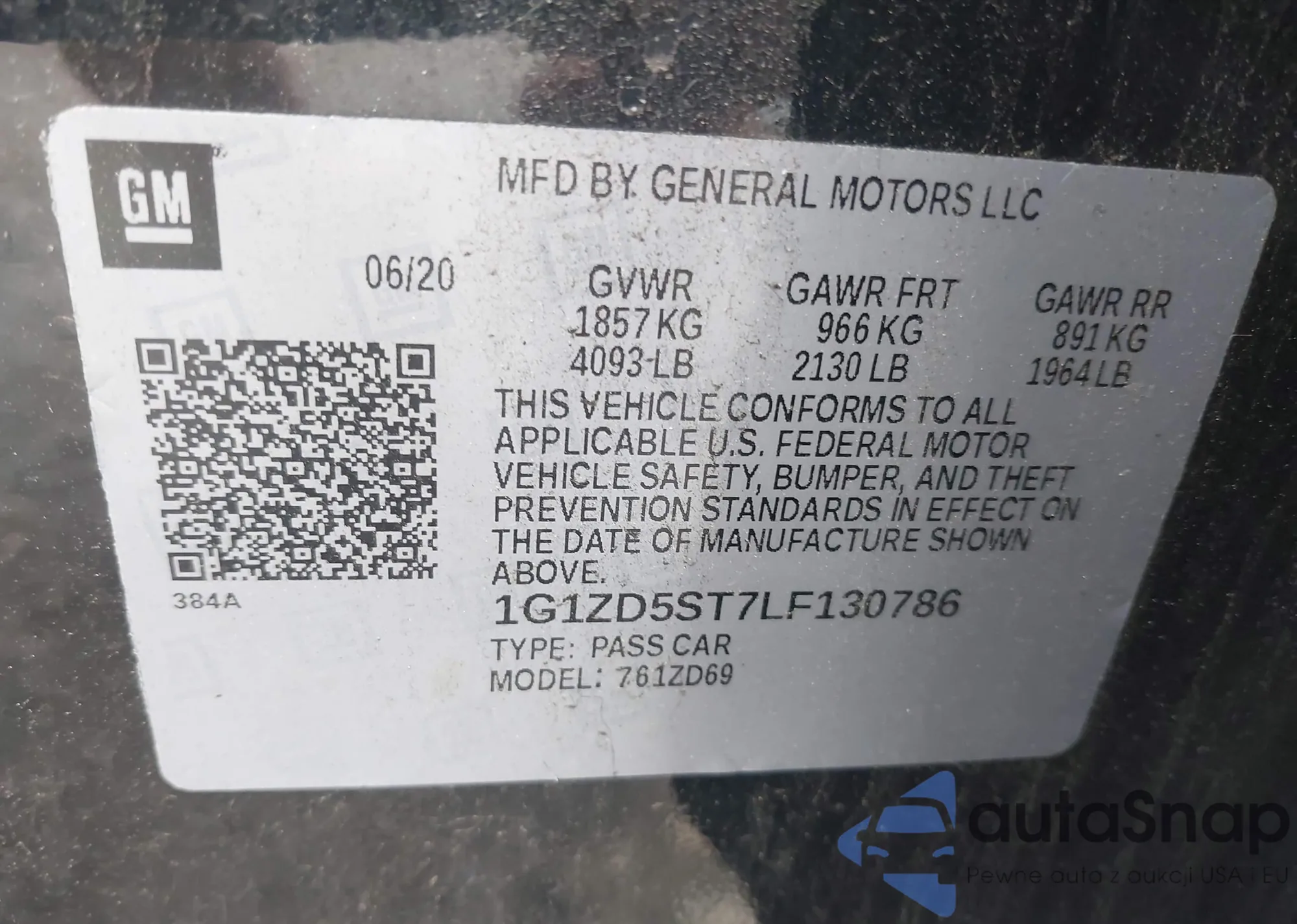• VIN 1G1ZD5ST7LF130786
