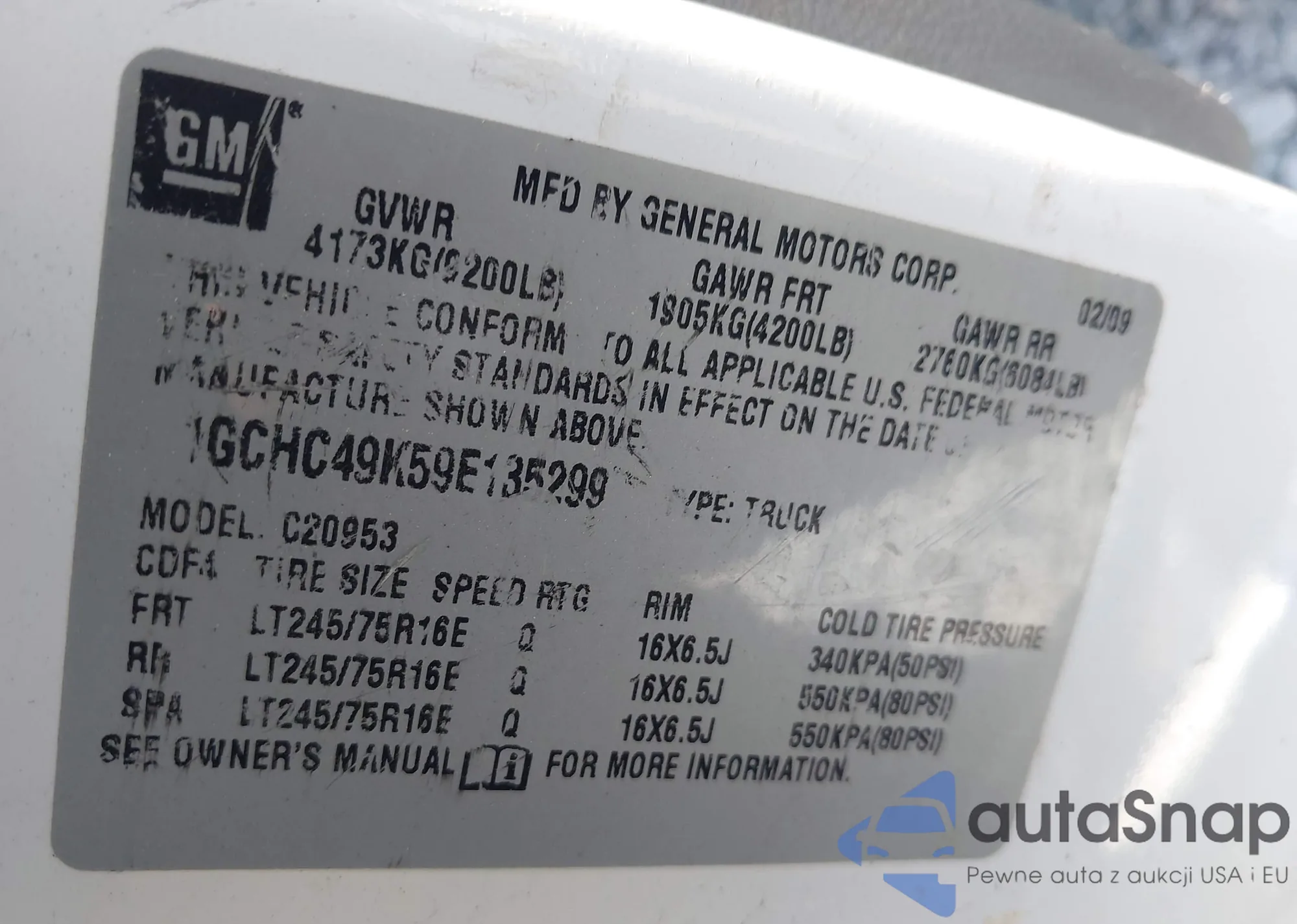 LOT: 42578510 VIN: 1GCHC49K59E135299