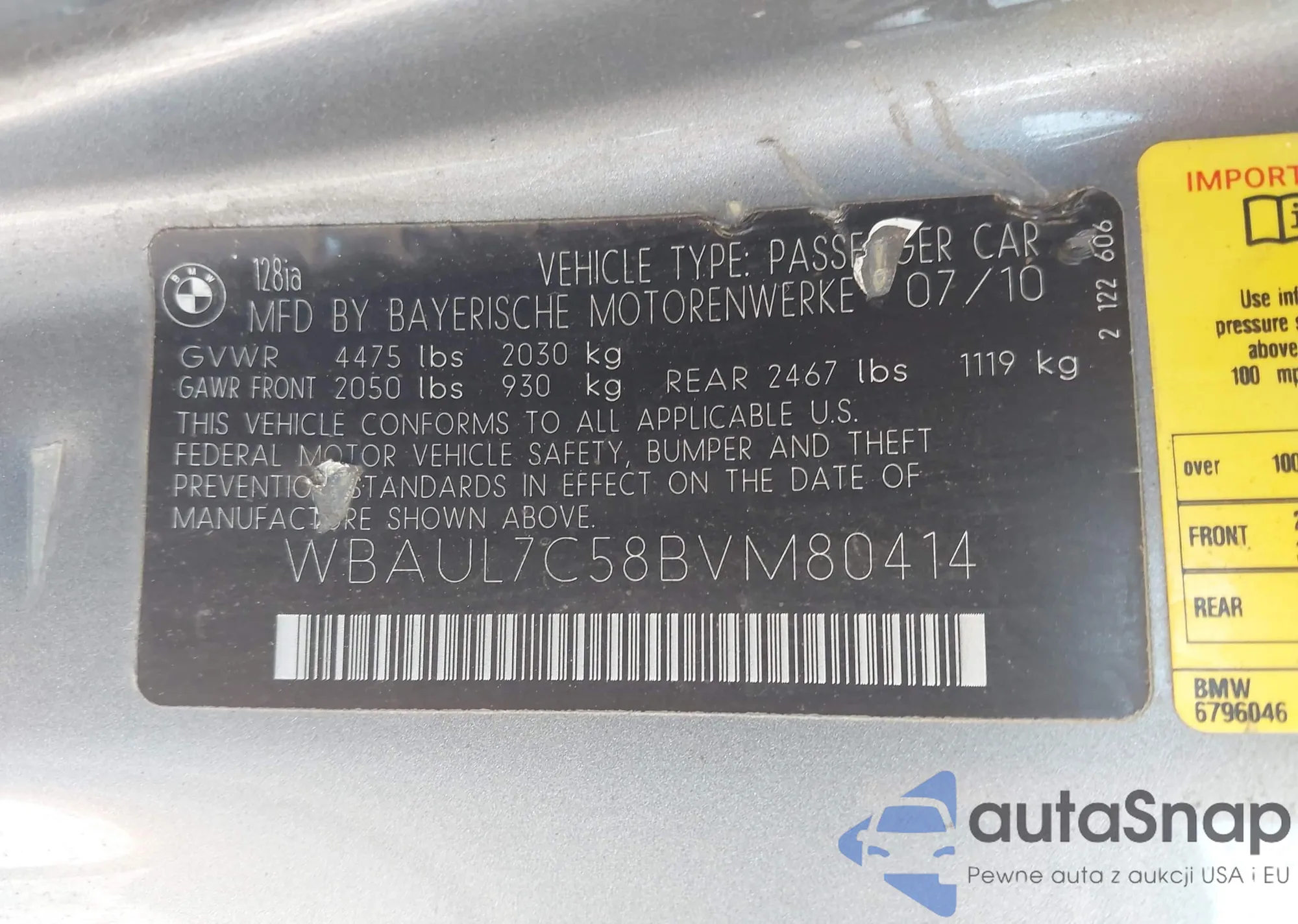 • VIN WBAUL7C58BVM80414