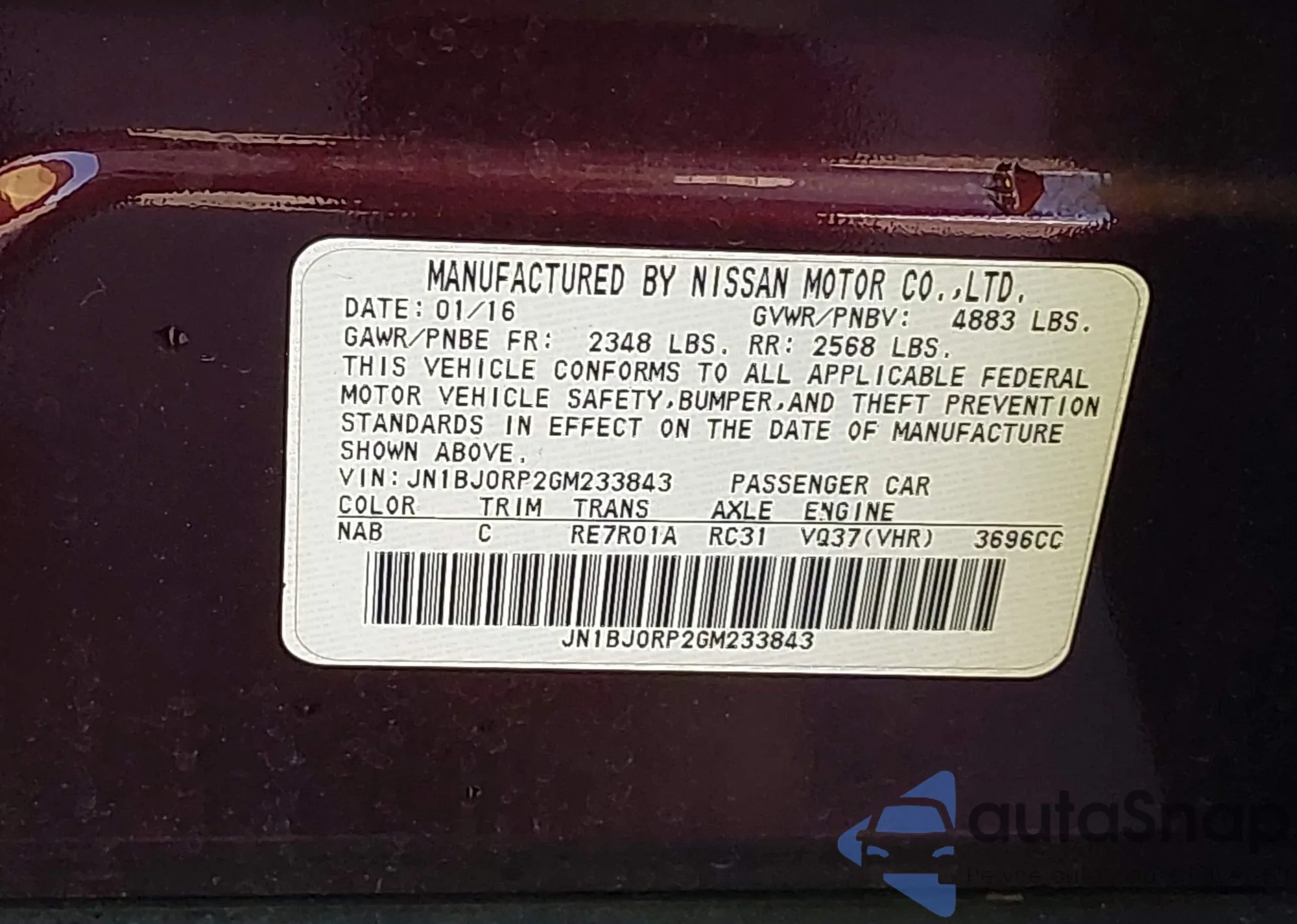 LOT: 42141288 VIN: JN1BJ0RP2GM233843