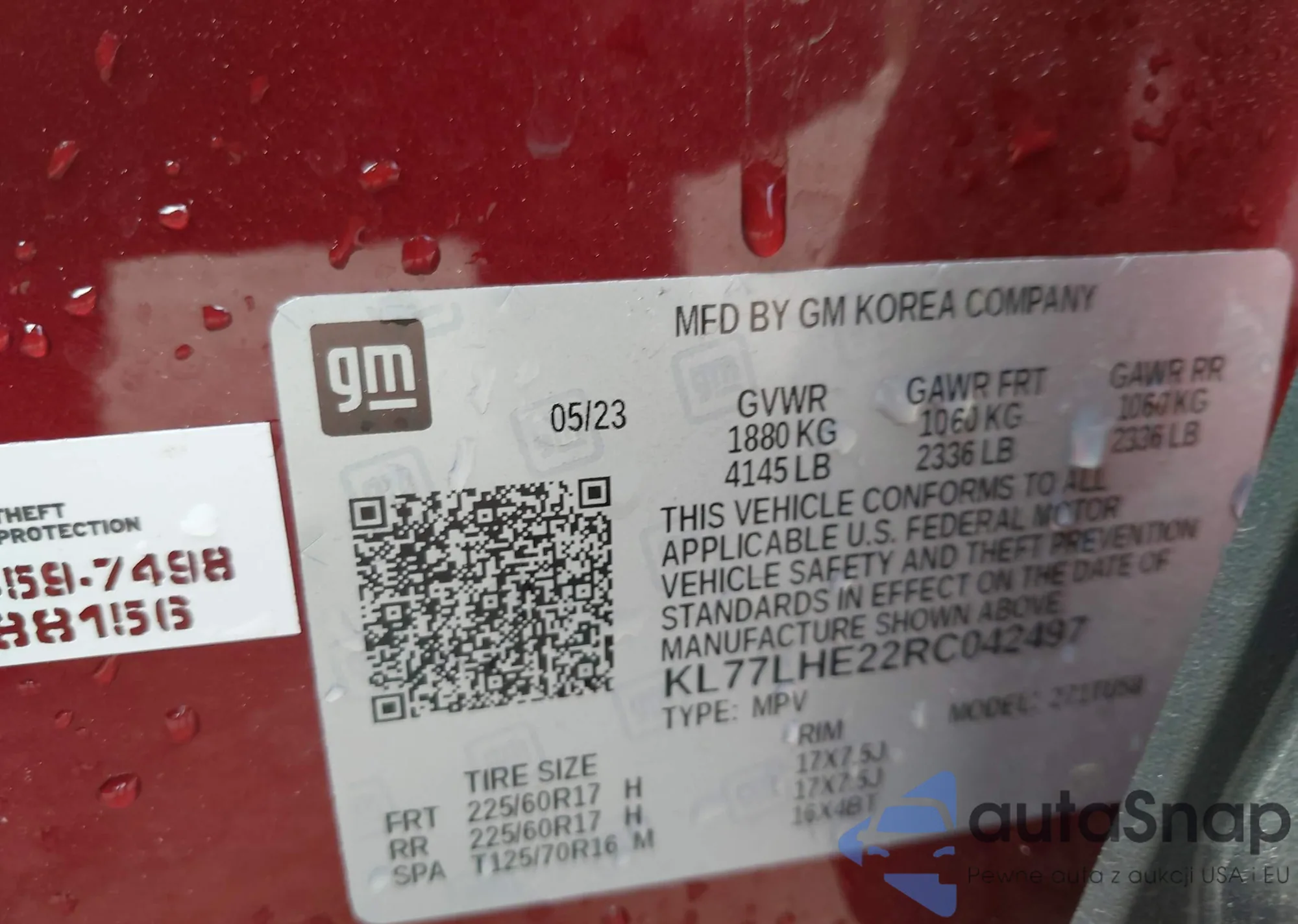 • VIN KL77LHE22RC042497
