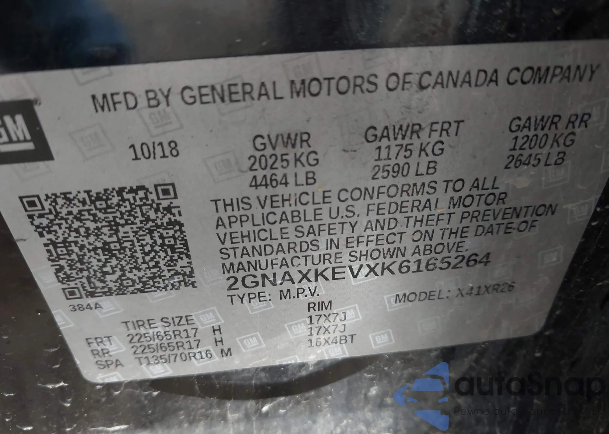 • VIN 2GNAXKEVXK6165264