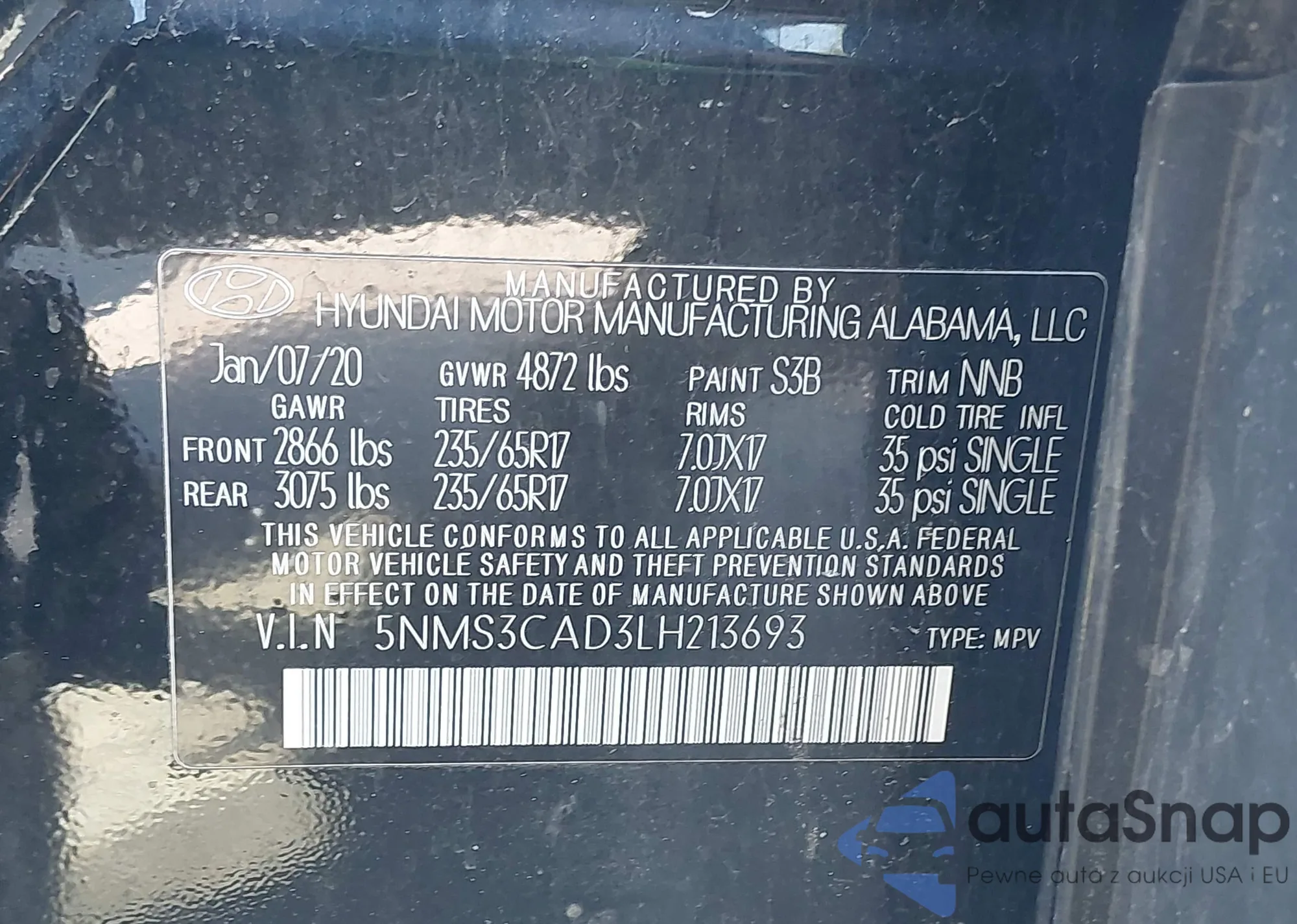 • VIN 5NMS3CAD3LH213693