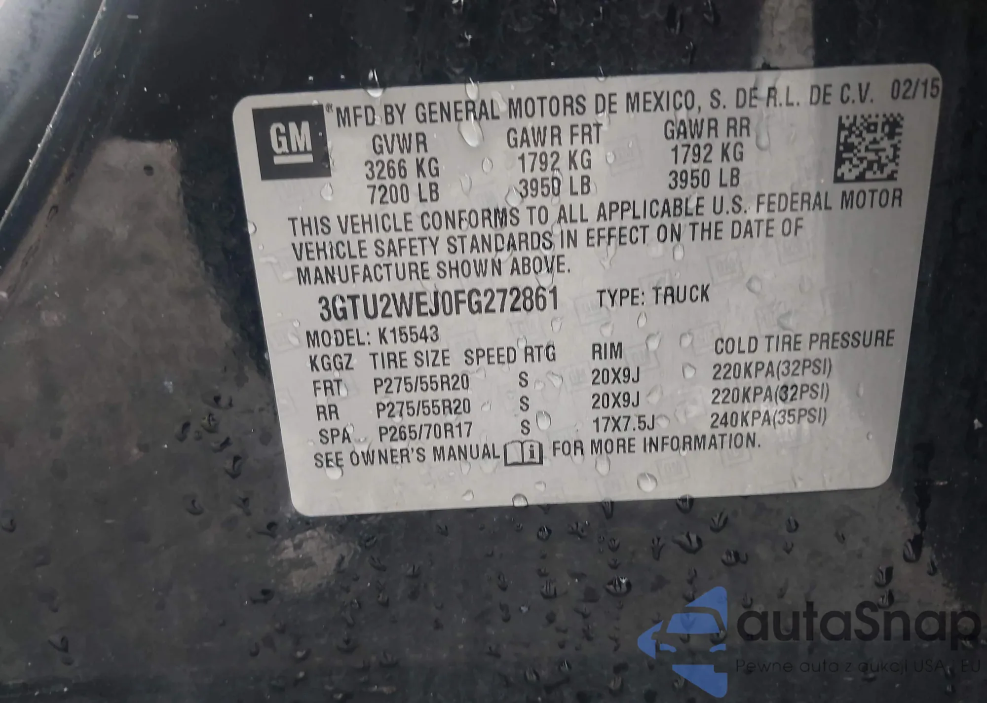 • VIN 3GTU2WEJ0FG272861