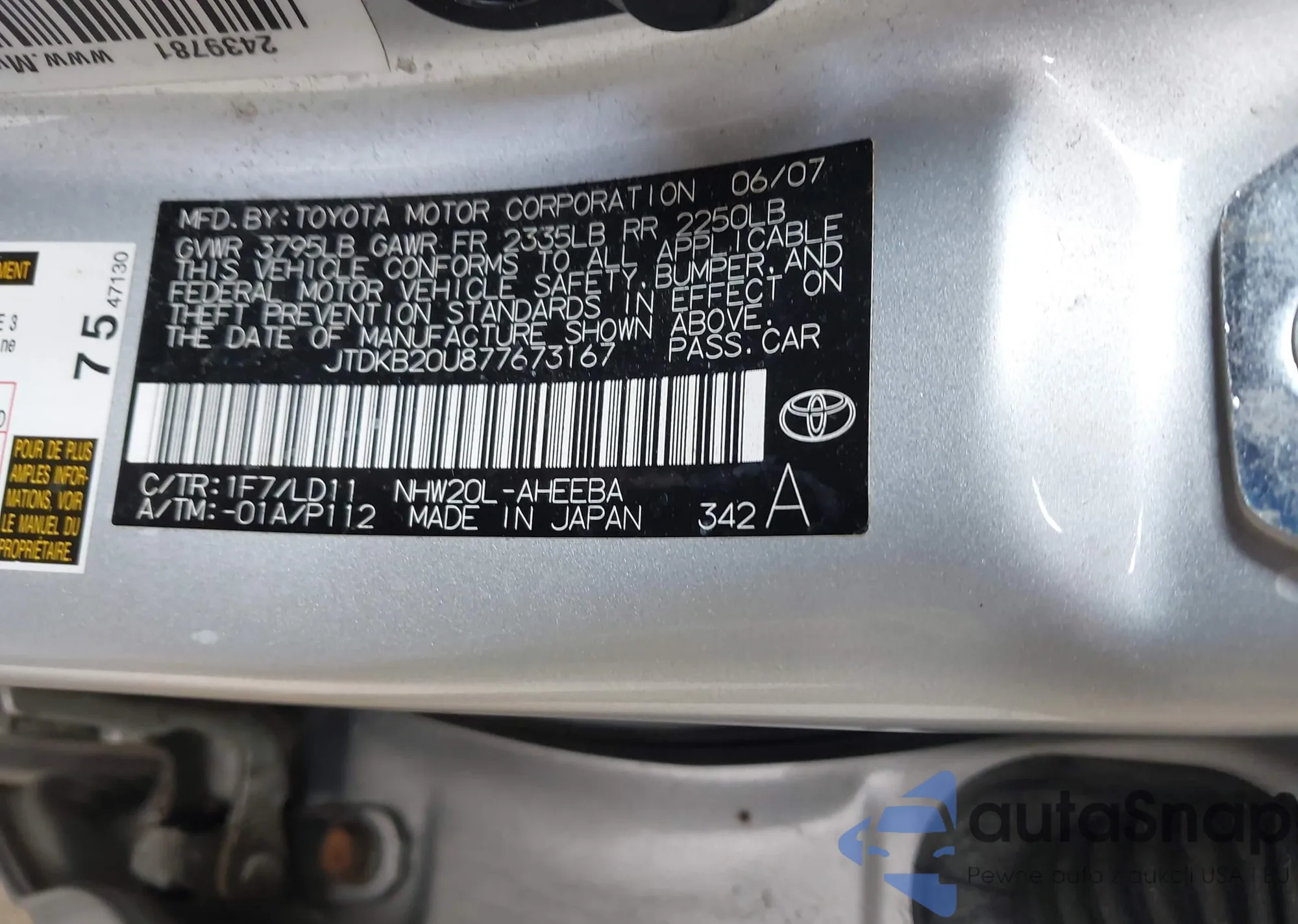 LOT: 42676897 VIN: JTDKB20U877673167