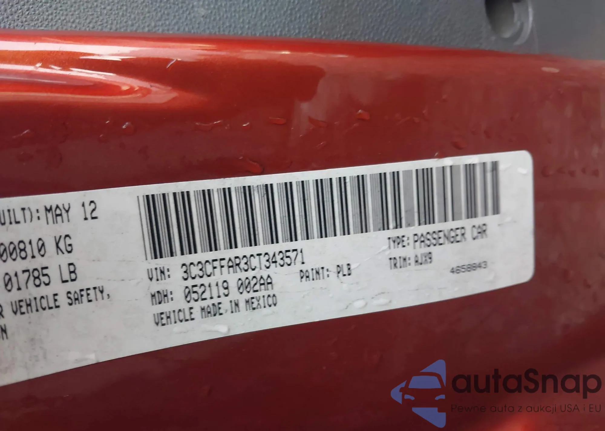• VIN 3VW4T7AJ8EM258972