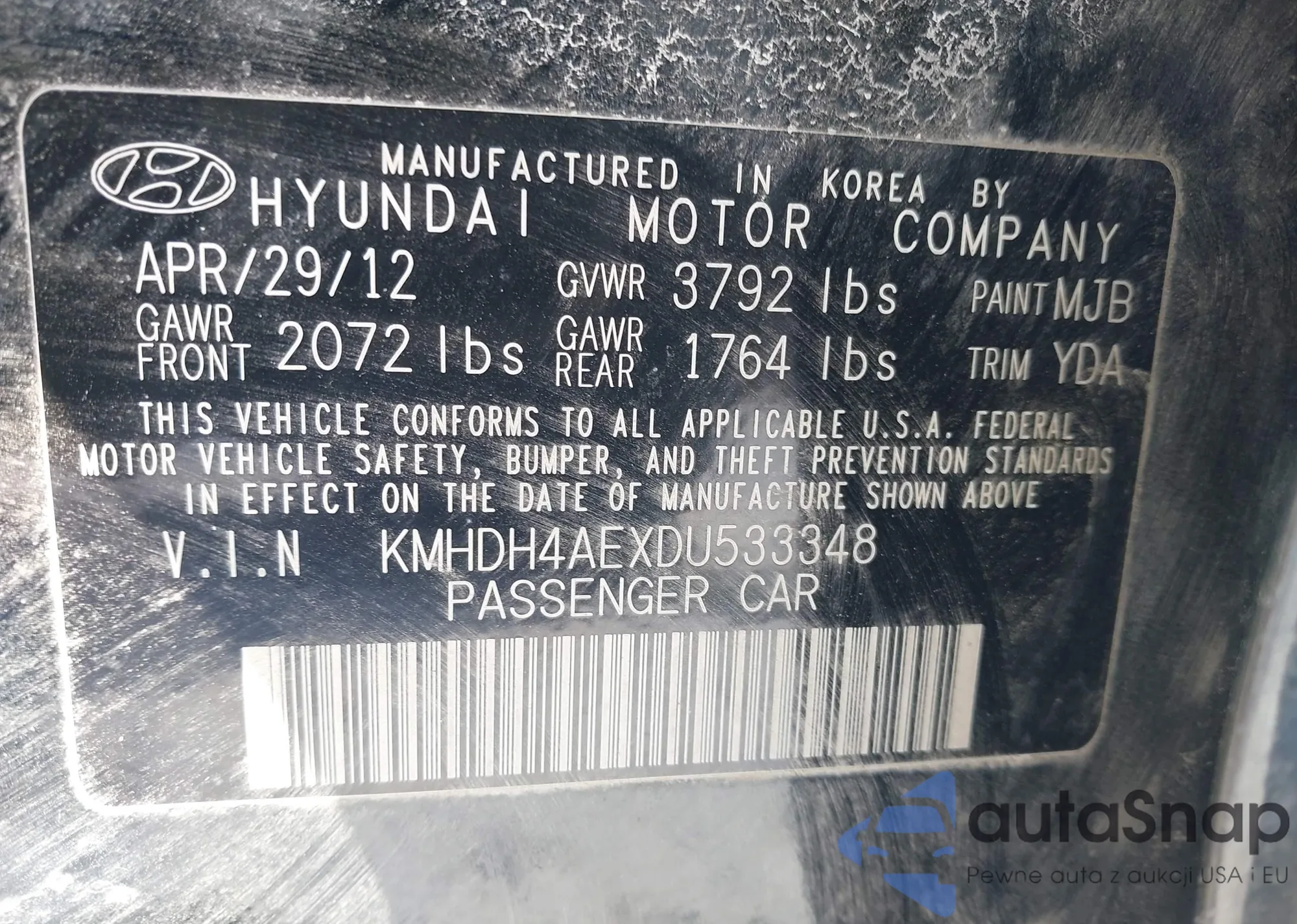 • VIN KMHDH4AEXDU533348