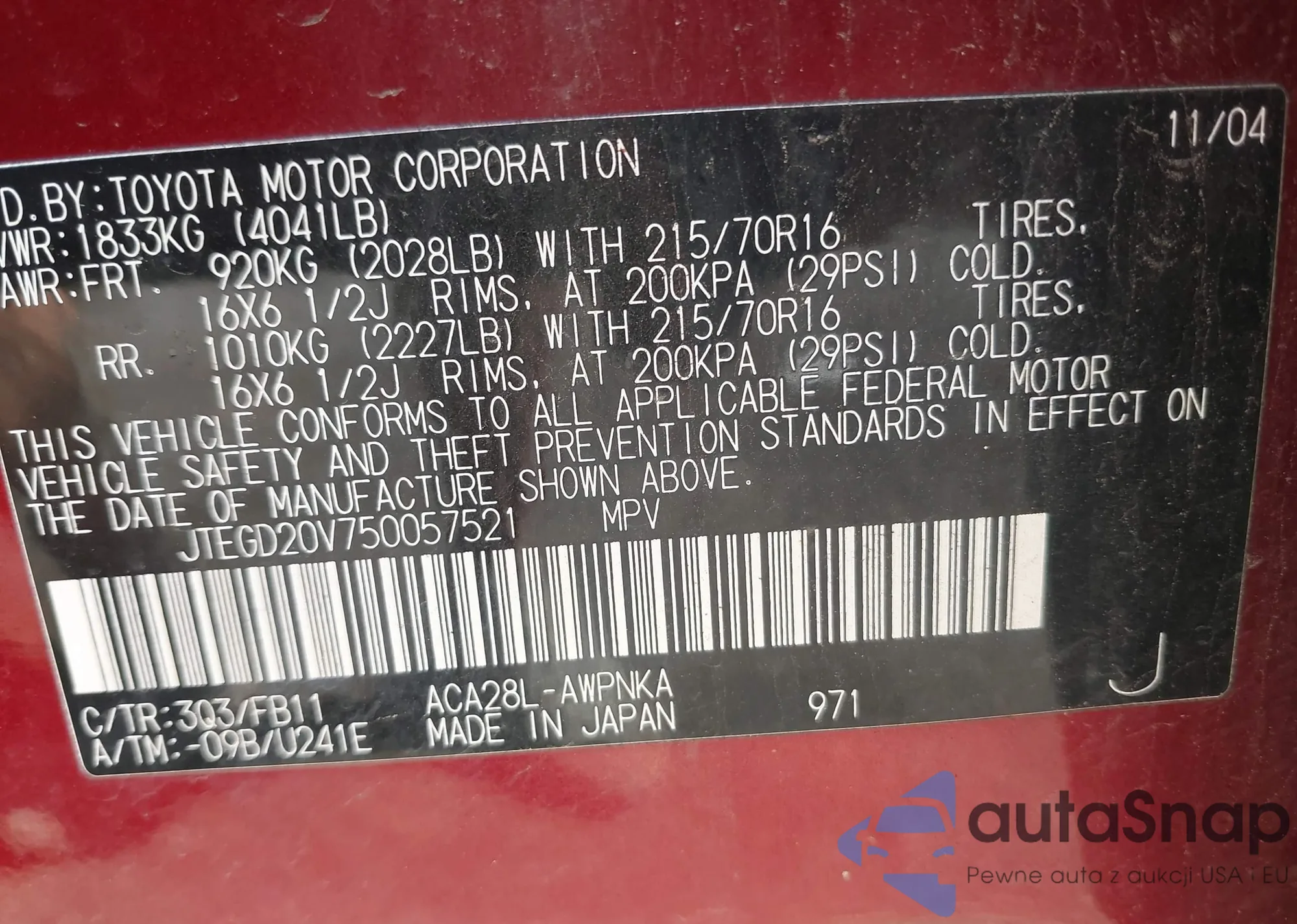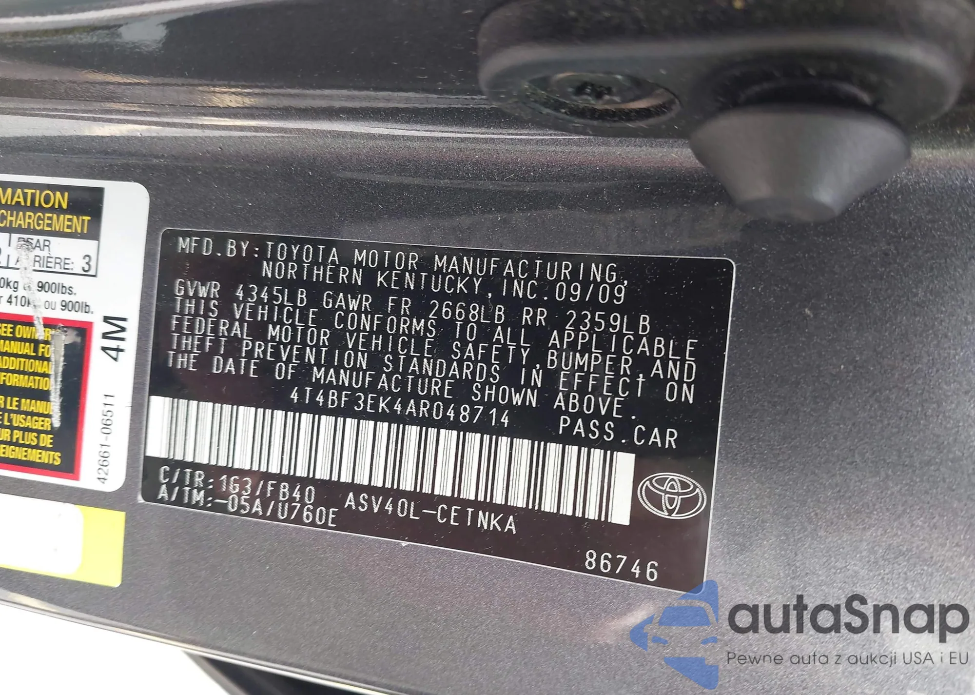 • VIN 4T4BF3EK4AR048714