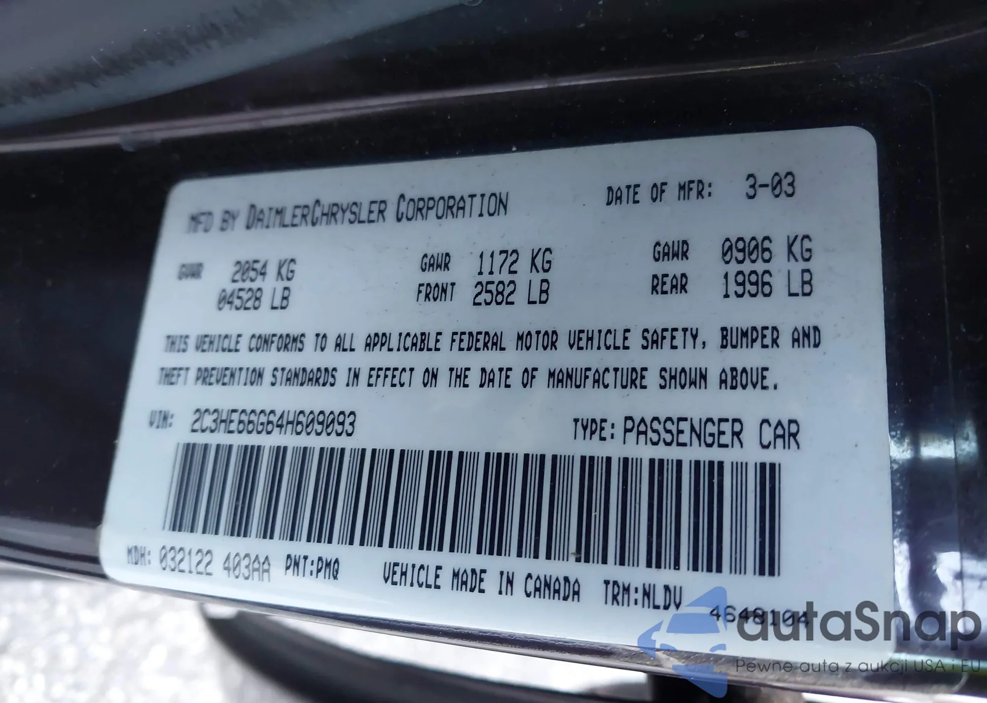LOT: 42632559 VIN: 2C3HE66G64H609093