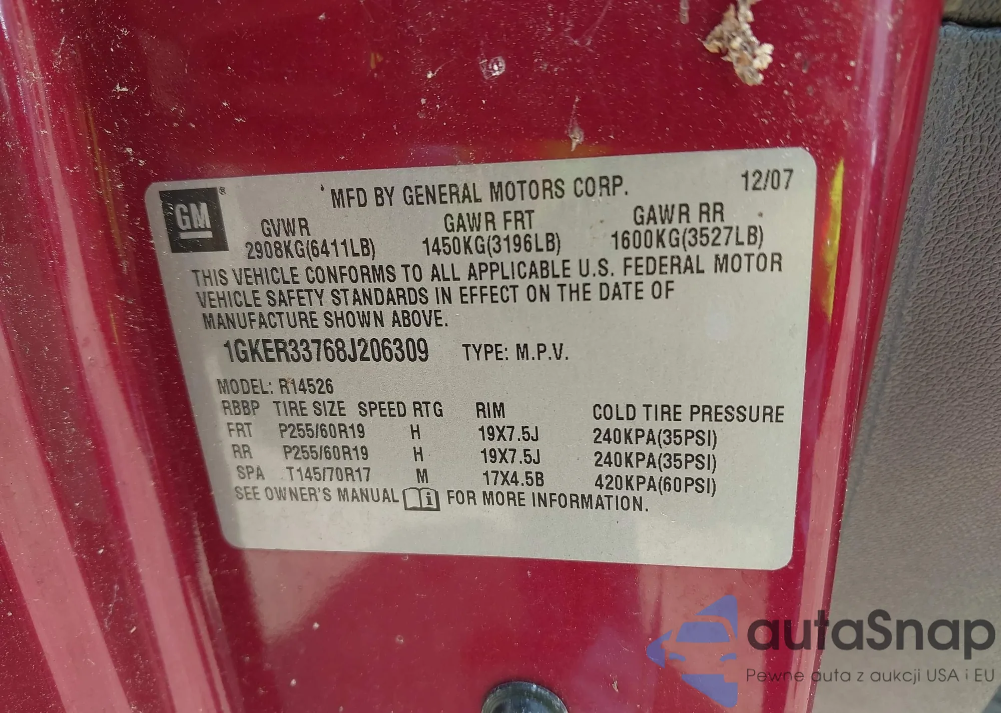 LOT: 42798464 VIN: 1GKER33768J206309