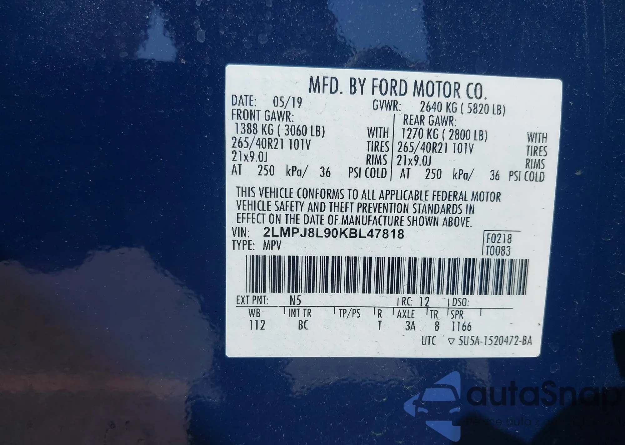 LOT: 42390723 VIN: 2LMPJ8L90KBL47818