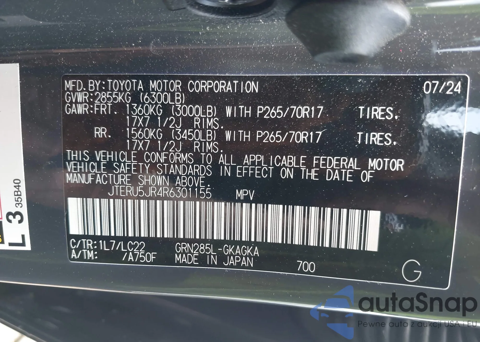 LOT: 42614961 VIN: JTERU5JR4R6301155