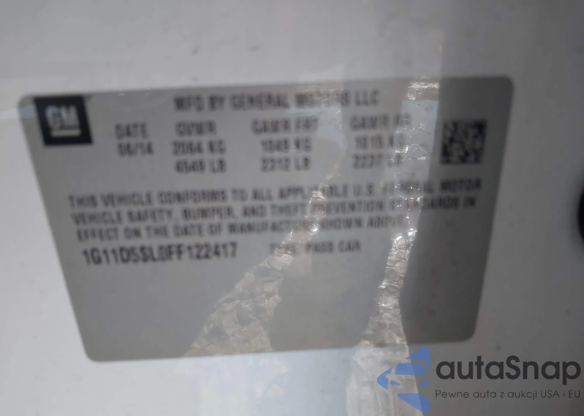 LOT: 42625664 VIN: 1G11C5SA0GF158918