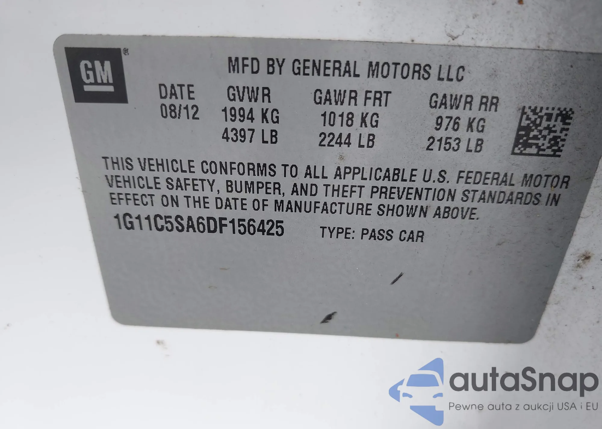 LOT: 42622456 VIN: 1G11C5SA6DF156425