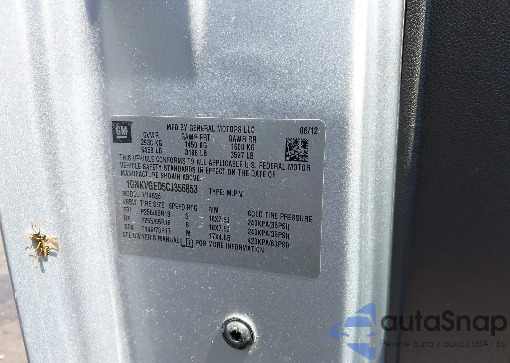 LOT: 42652473 VIN: 1GNKVGED5CJ356853