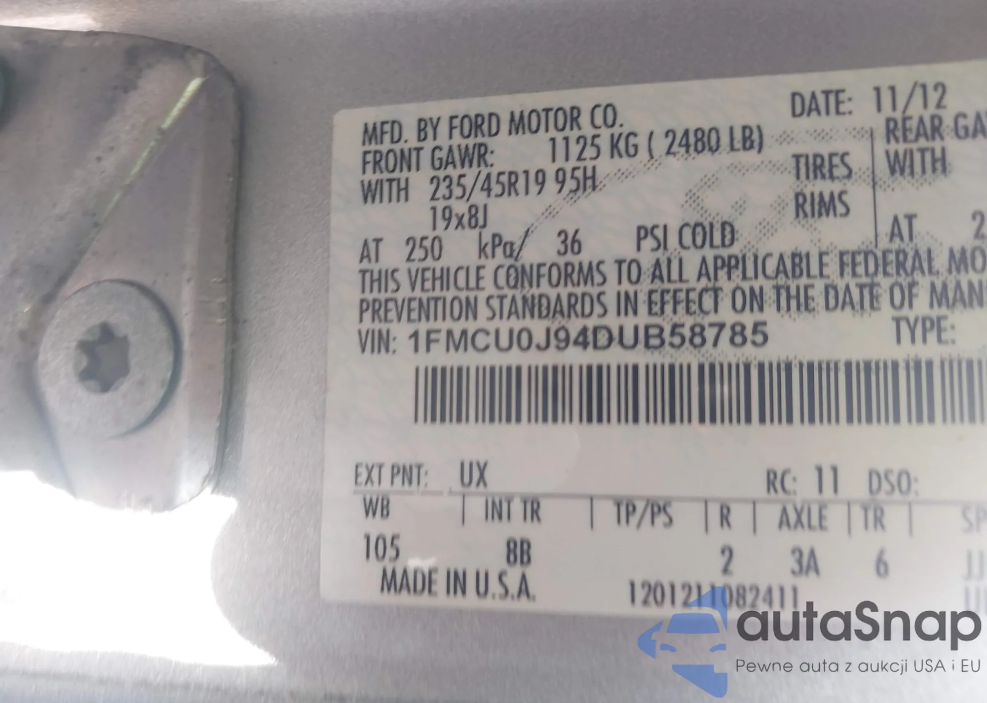 • VIN 1FMCU0J94DUB58785