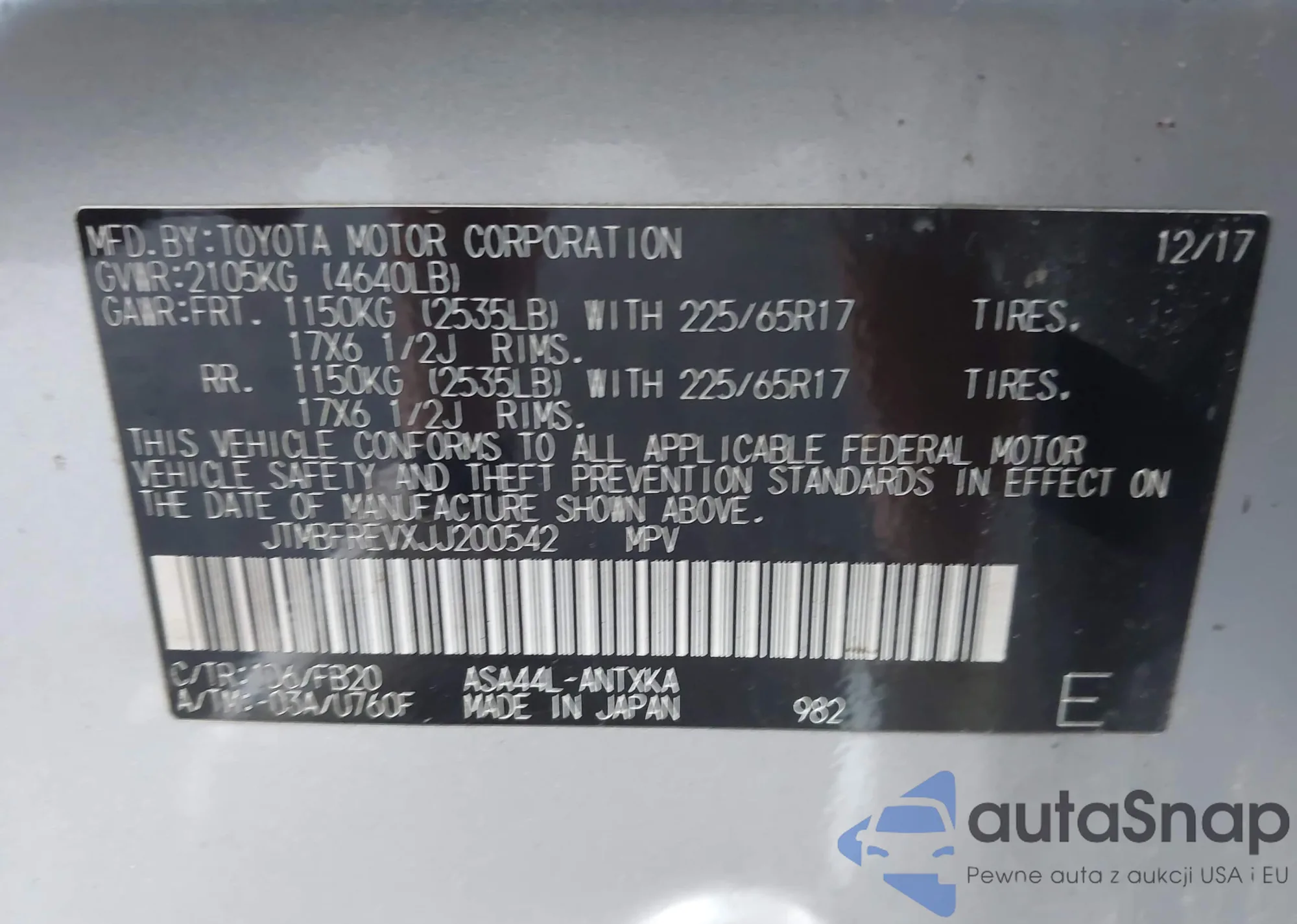 LOT: 42680318 VIN: JTMBFREVXJJ200542