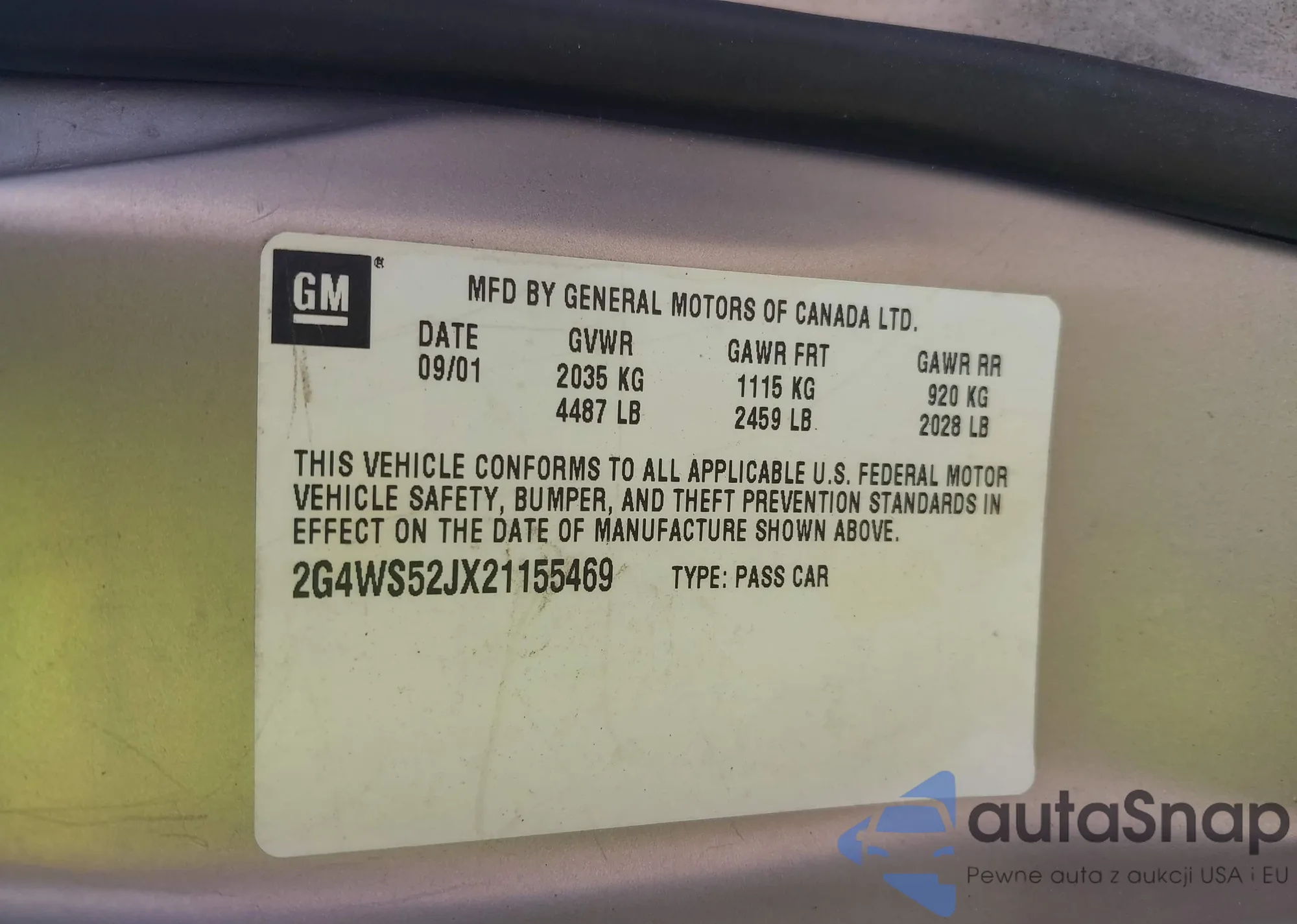 • VIN 1G6KD57Y59U132055