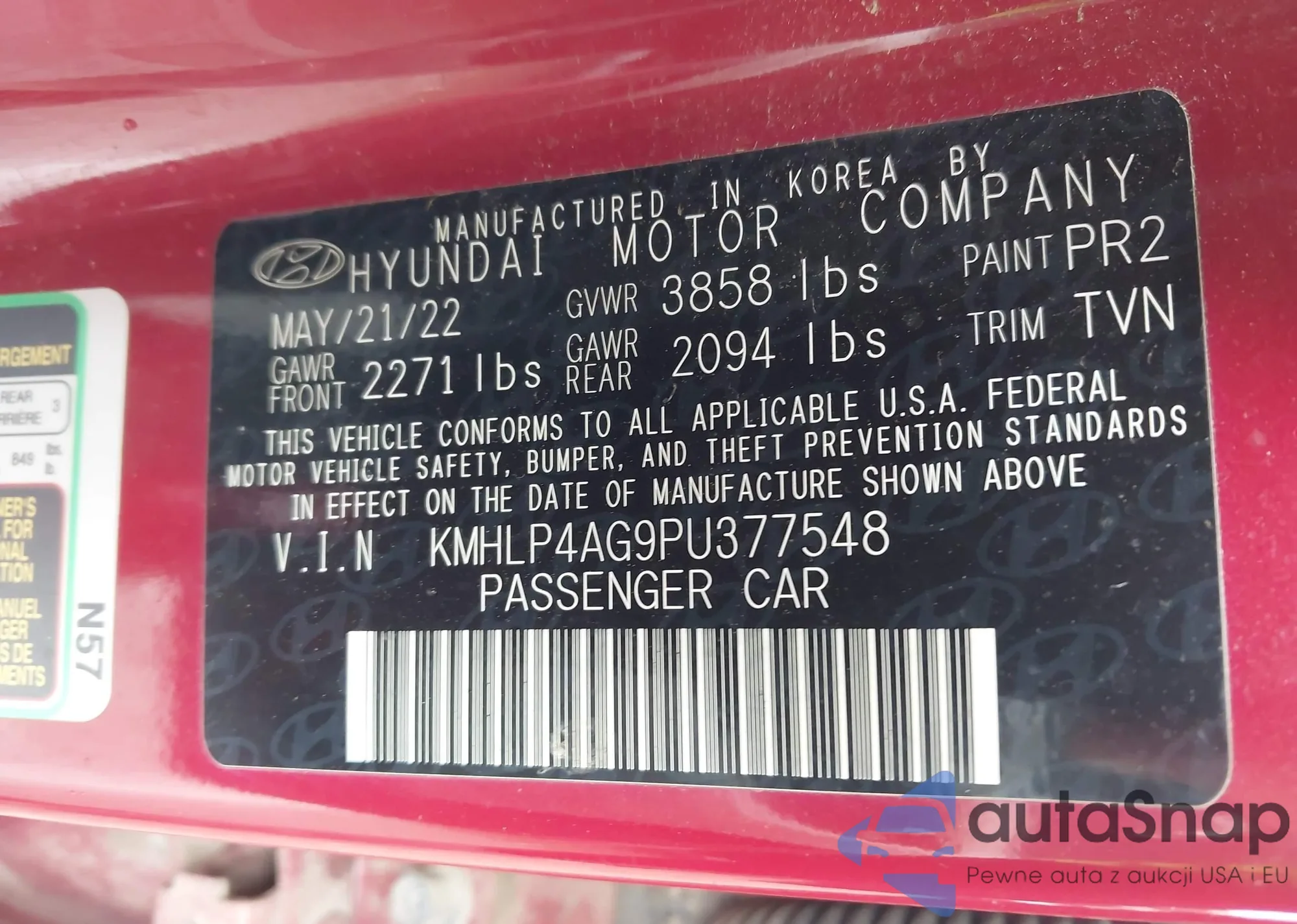 • VIN KMHLP4AG9PU377548