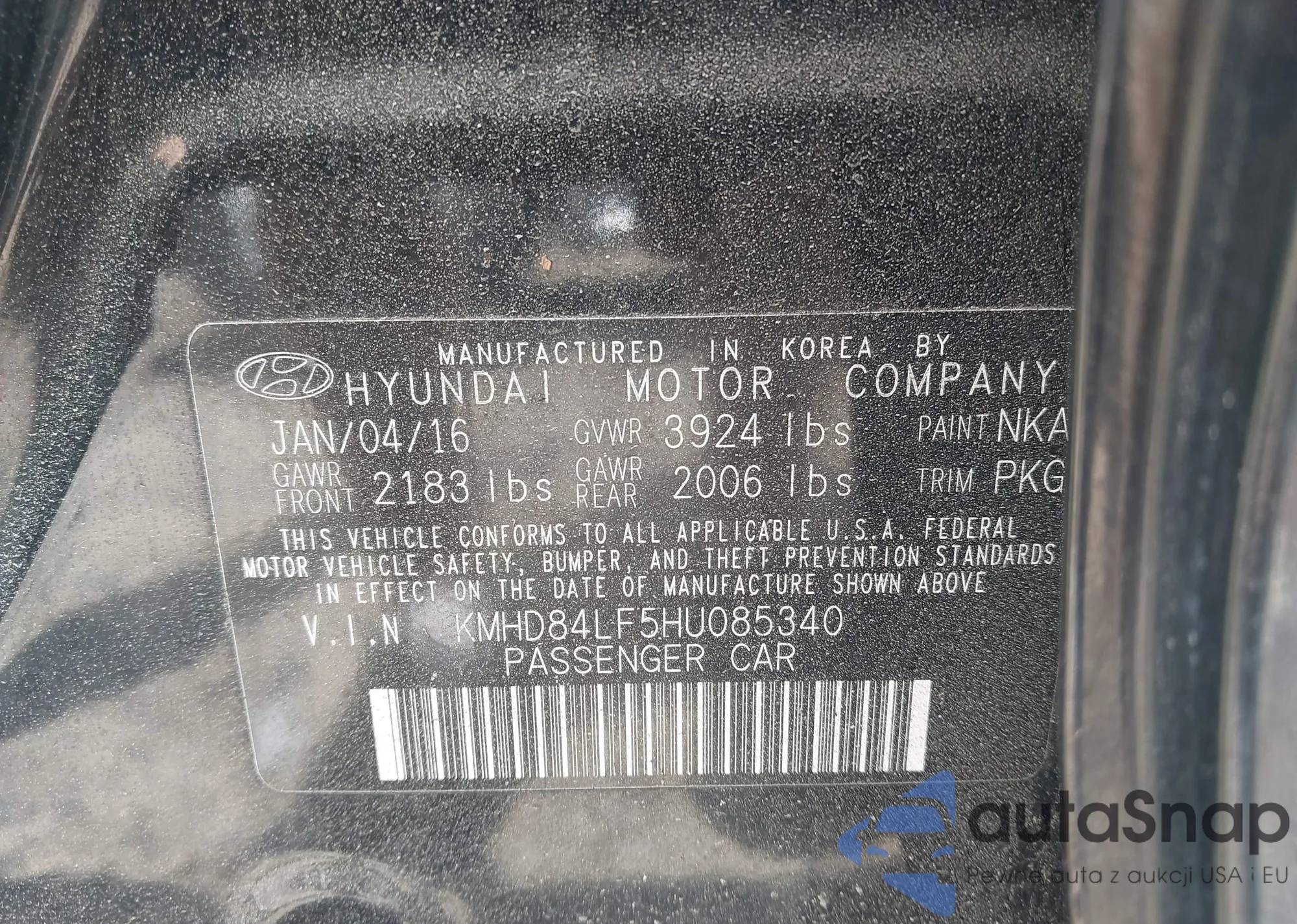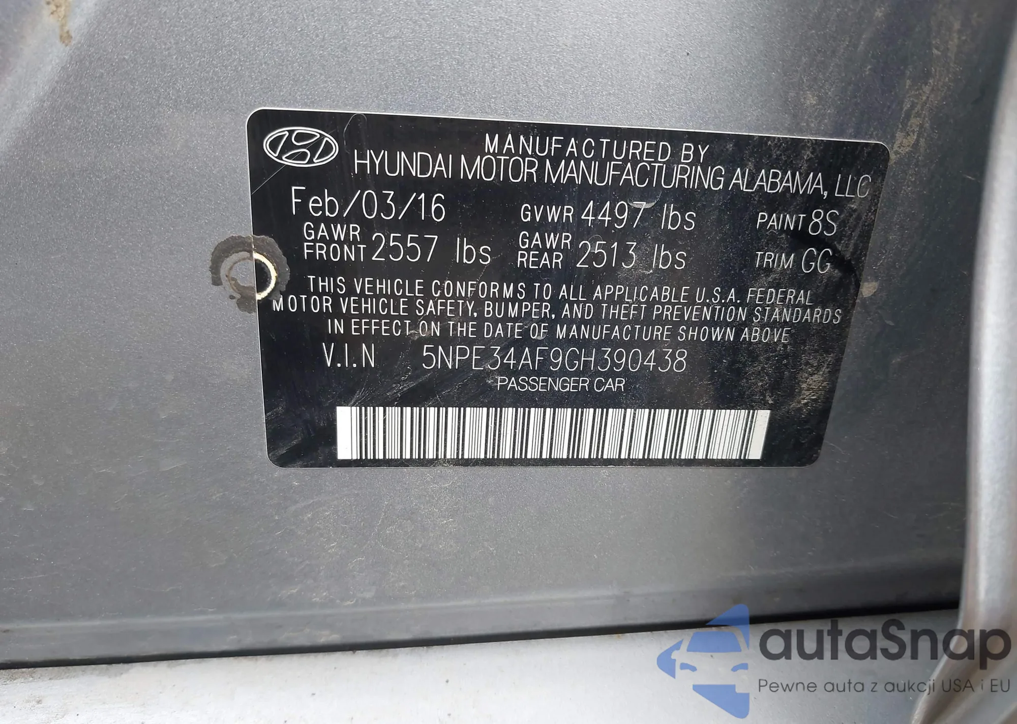 • VIN 5NPE34AF9GH390438