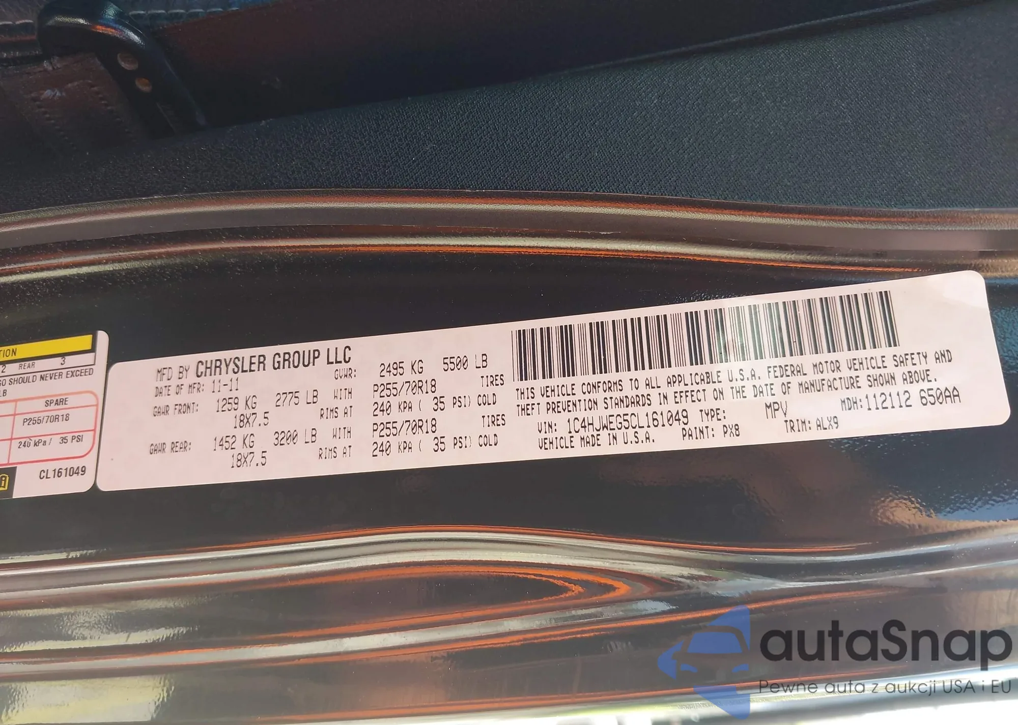 • VIN 1C4HJWEG5CL161049