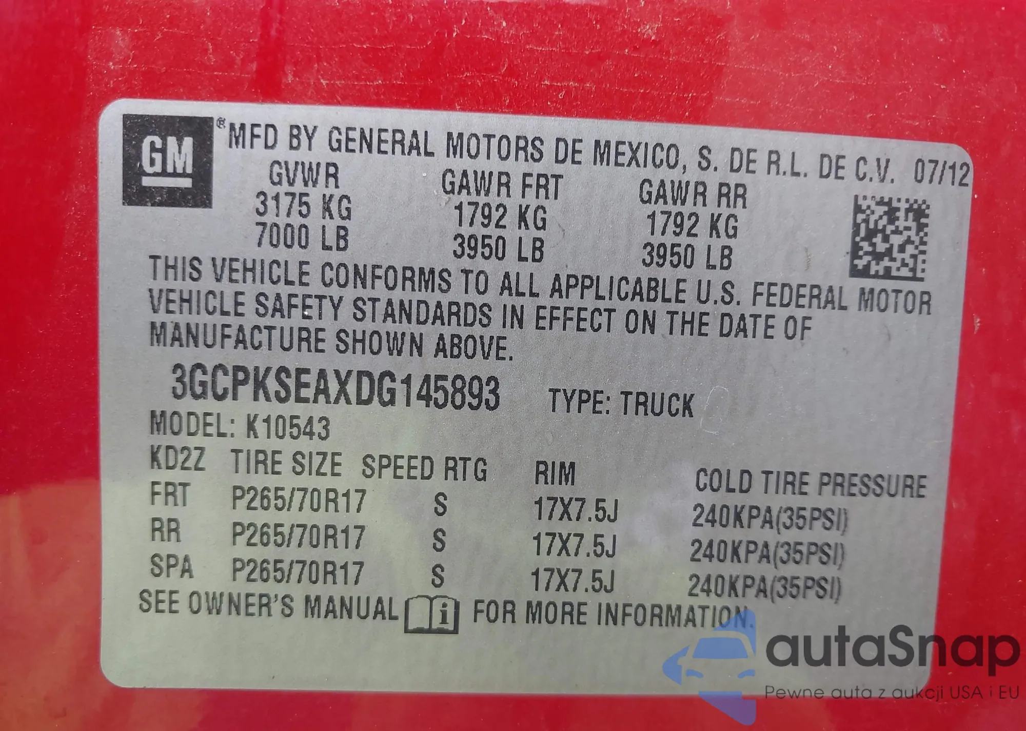 • VIN 3GCPKSEAXDG145893