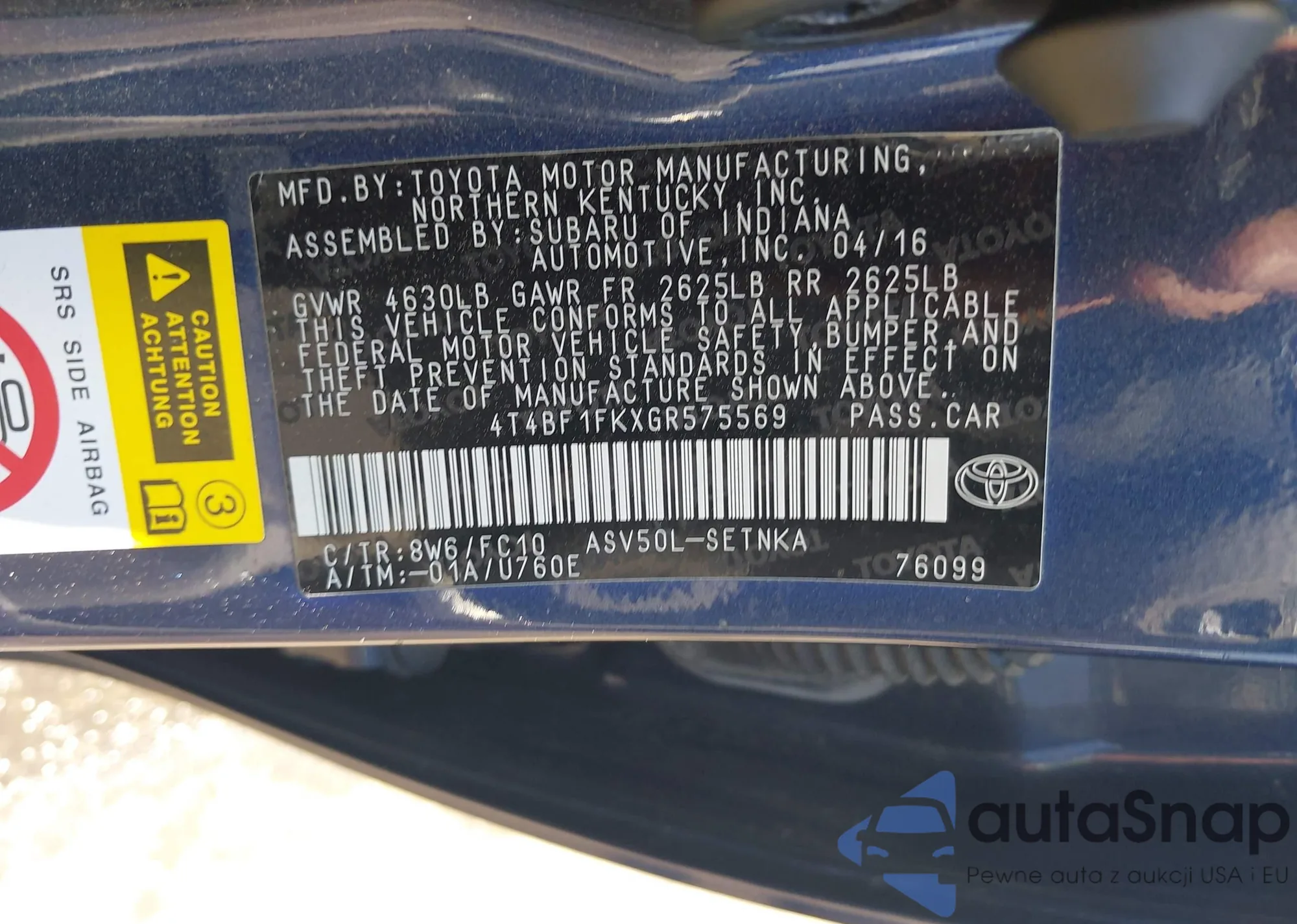 • VIN 4T4BF1FKXGR575569