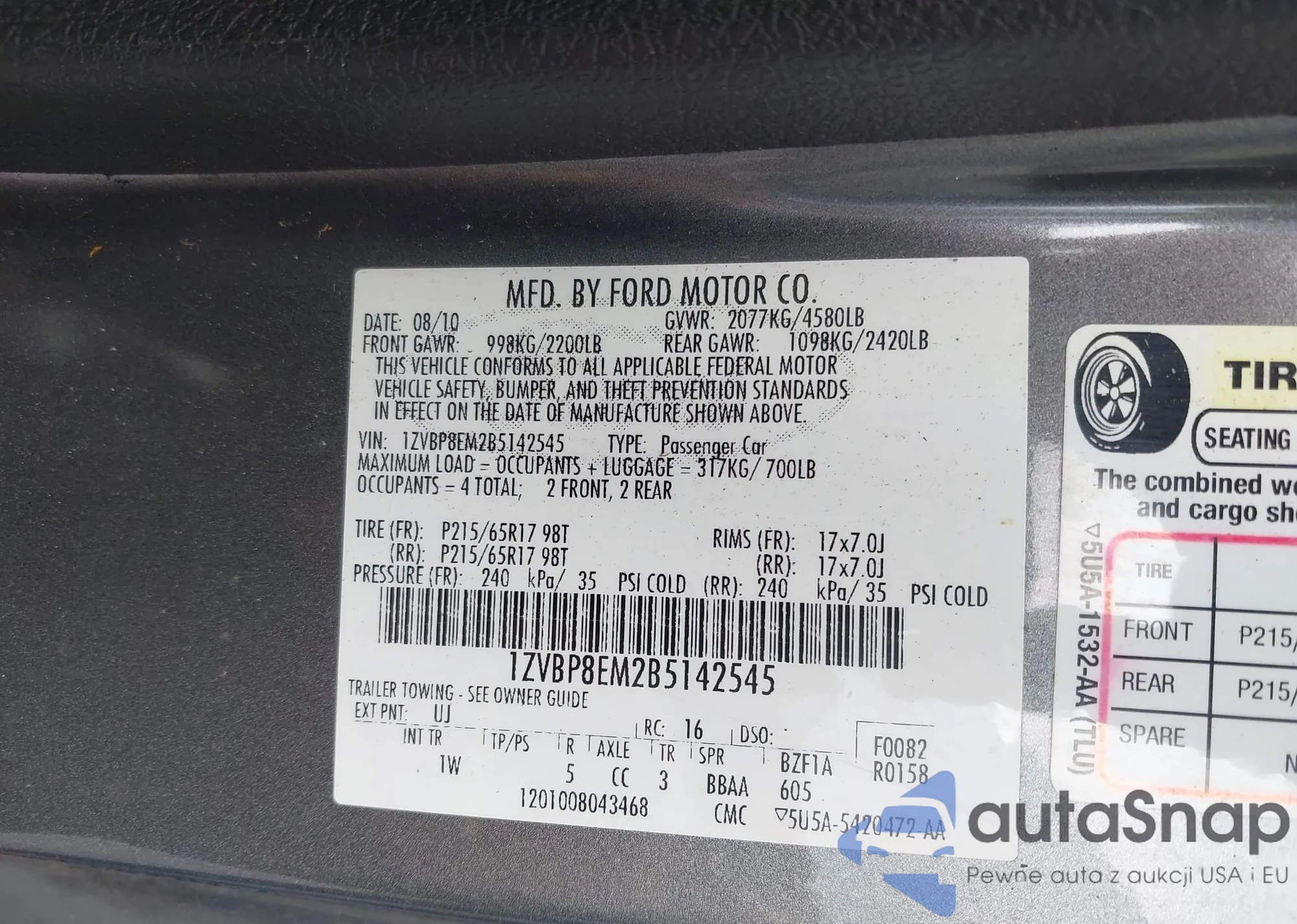 • VIN 5FPYK1F57BB452321