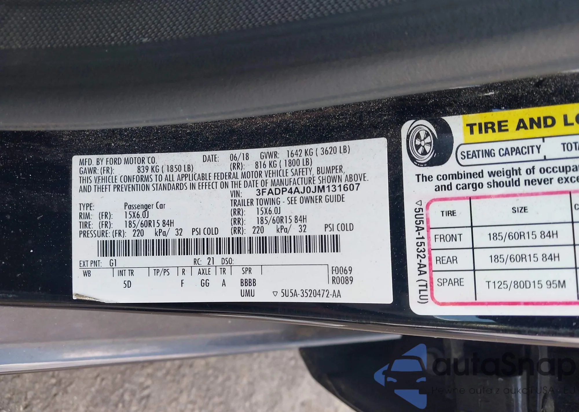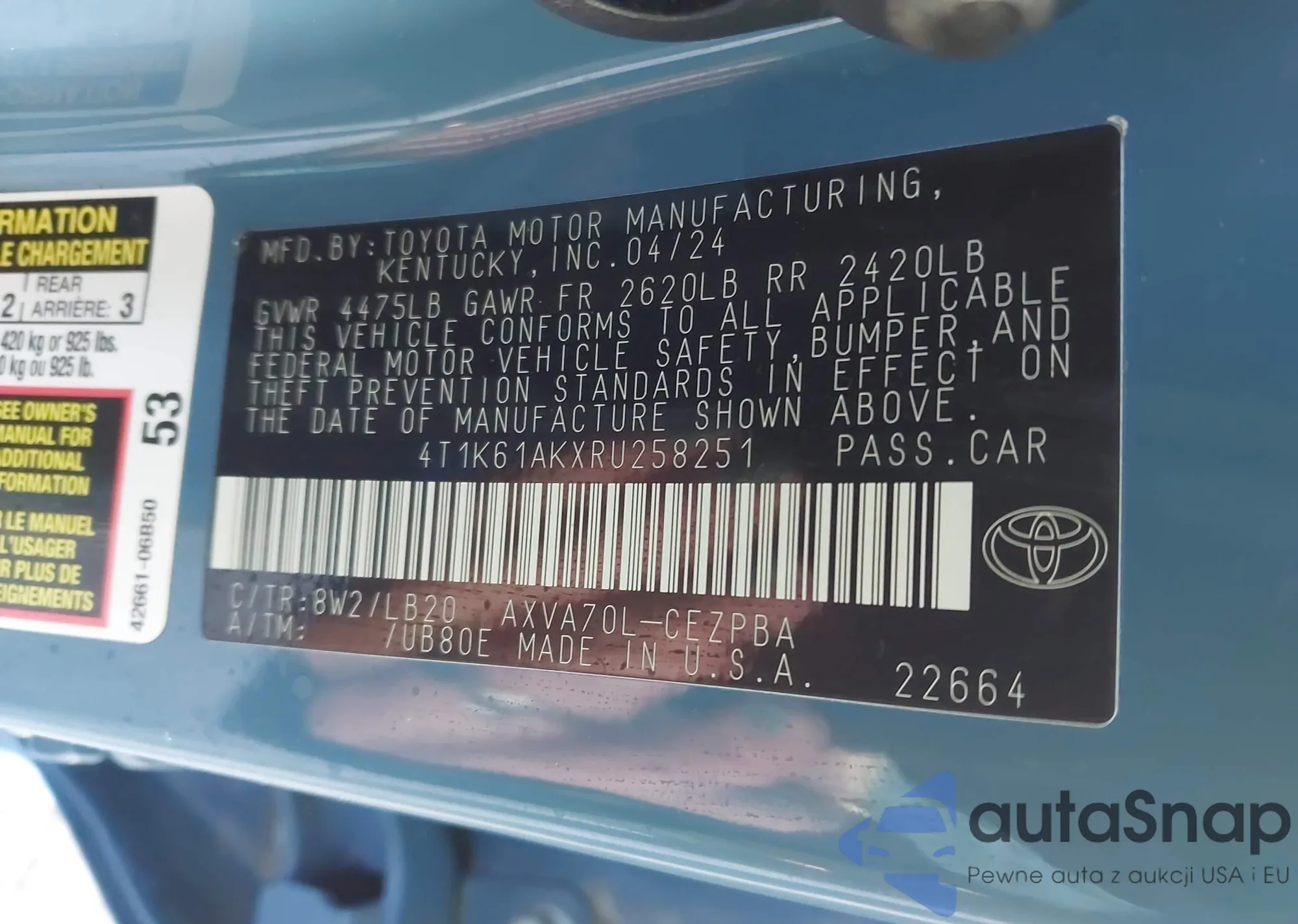 LOT: 42715824 VIN: JTDKN3DU7A0118363