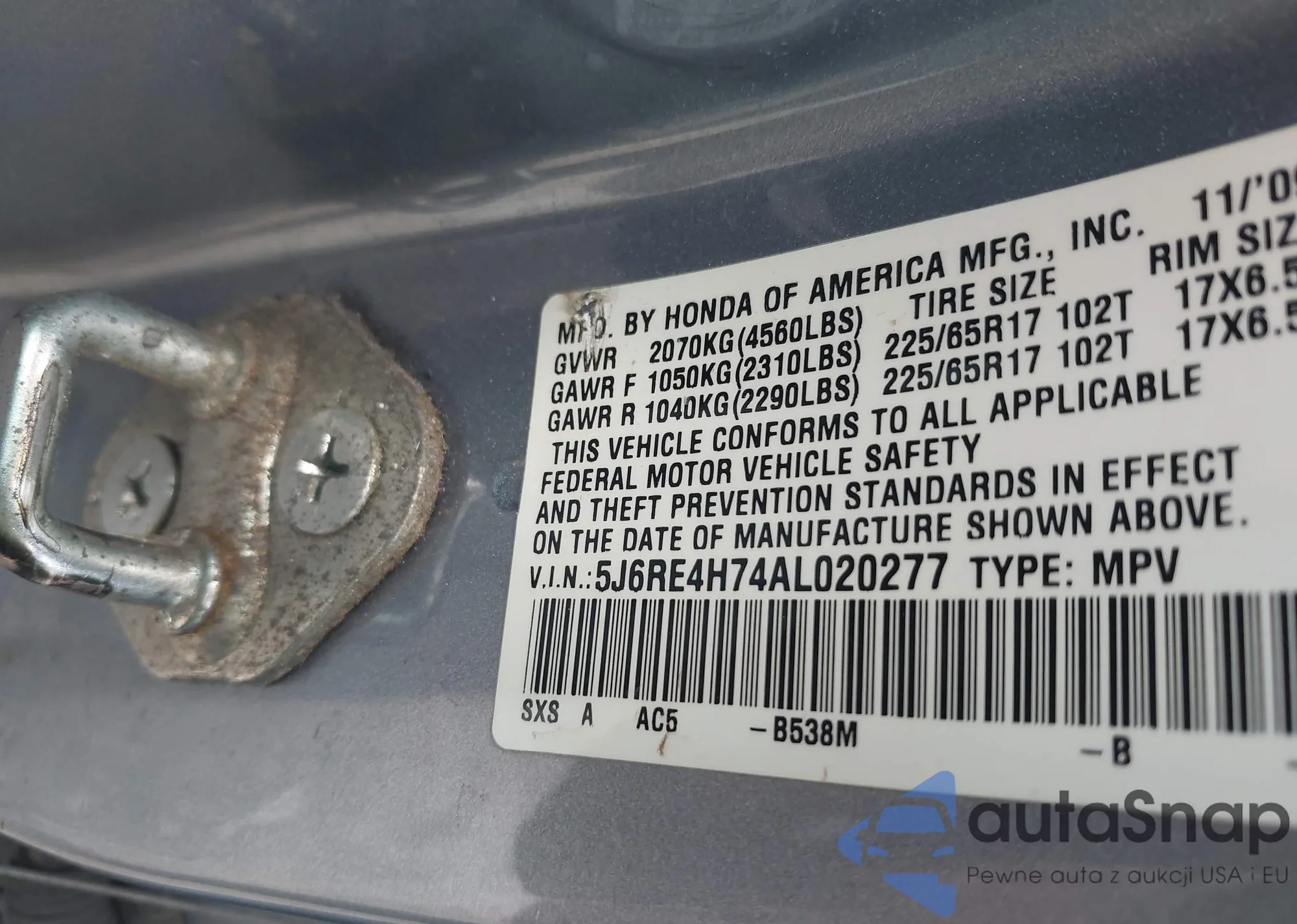 • VIN 5FNRL5H69BB003357