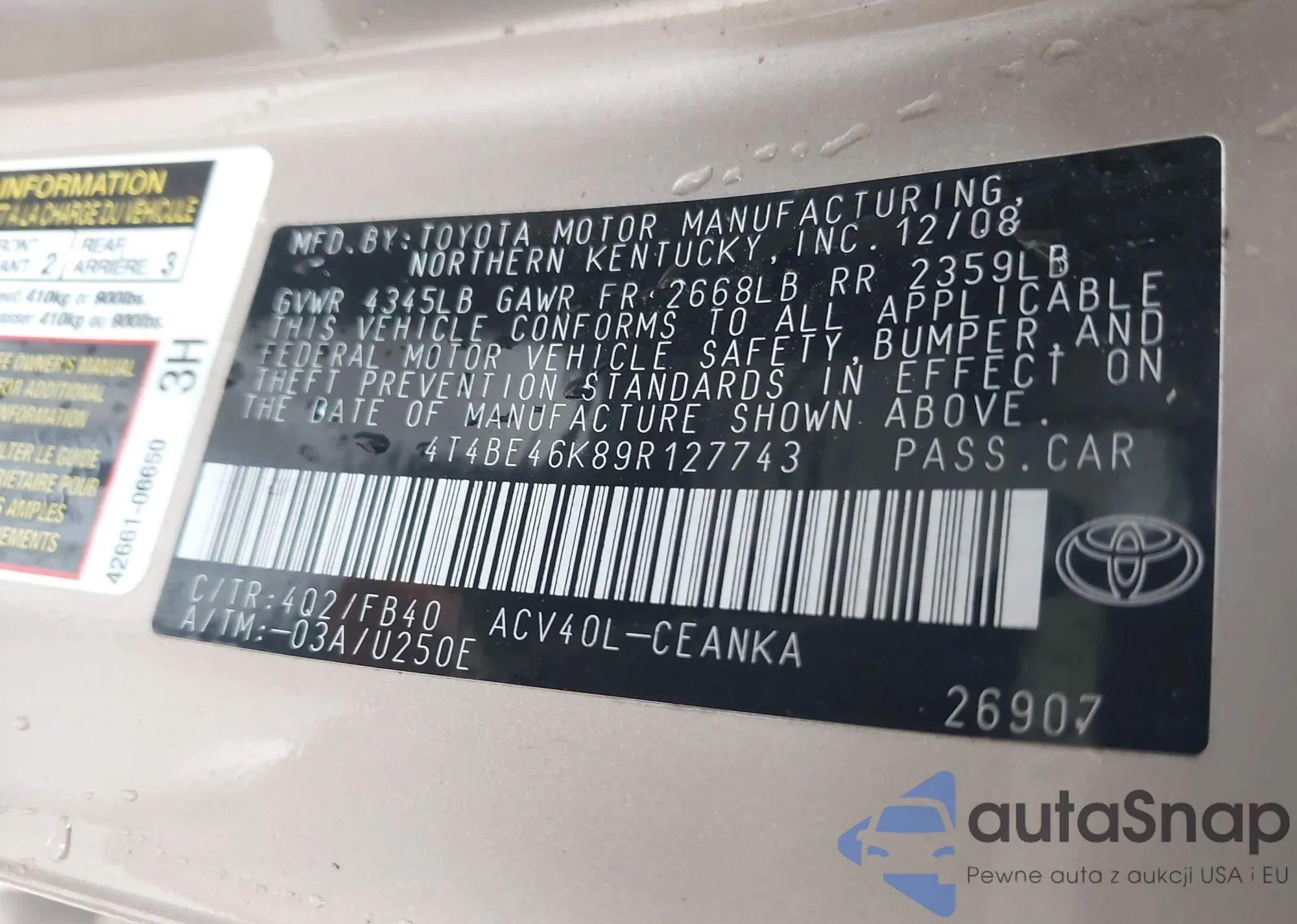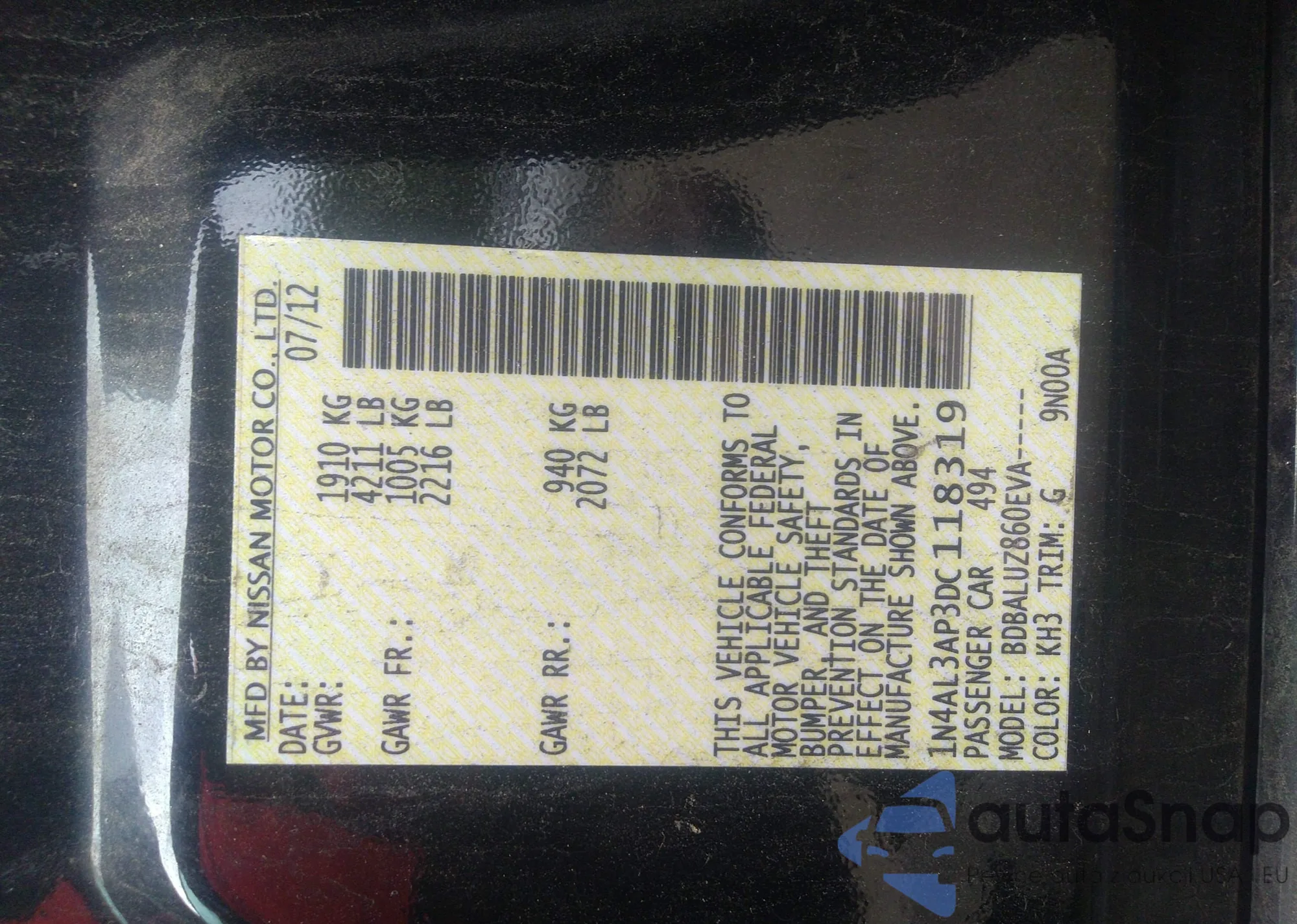 • VIN 1N4BL4DV9KC148460
