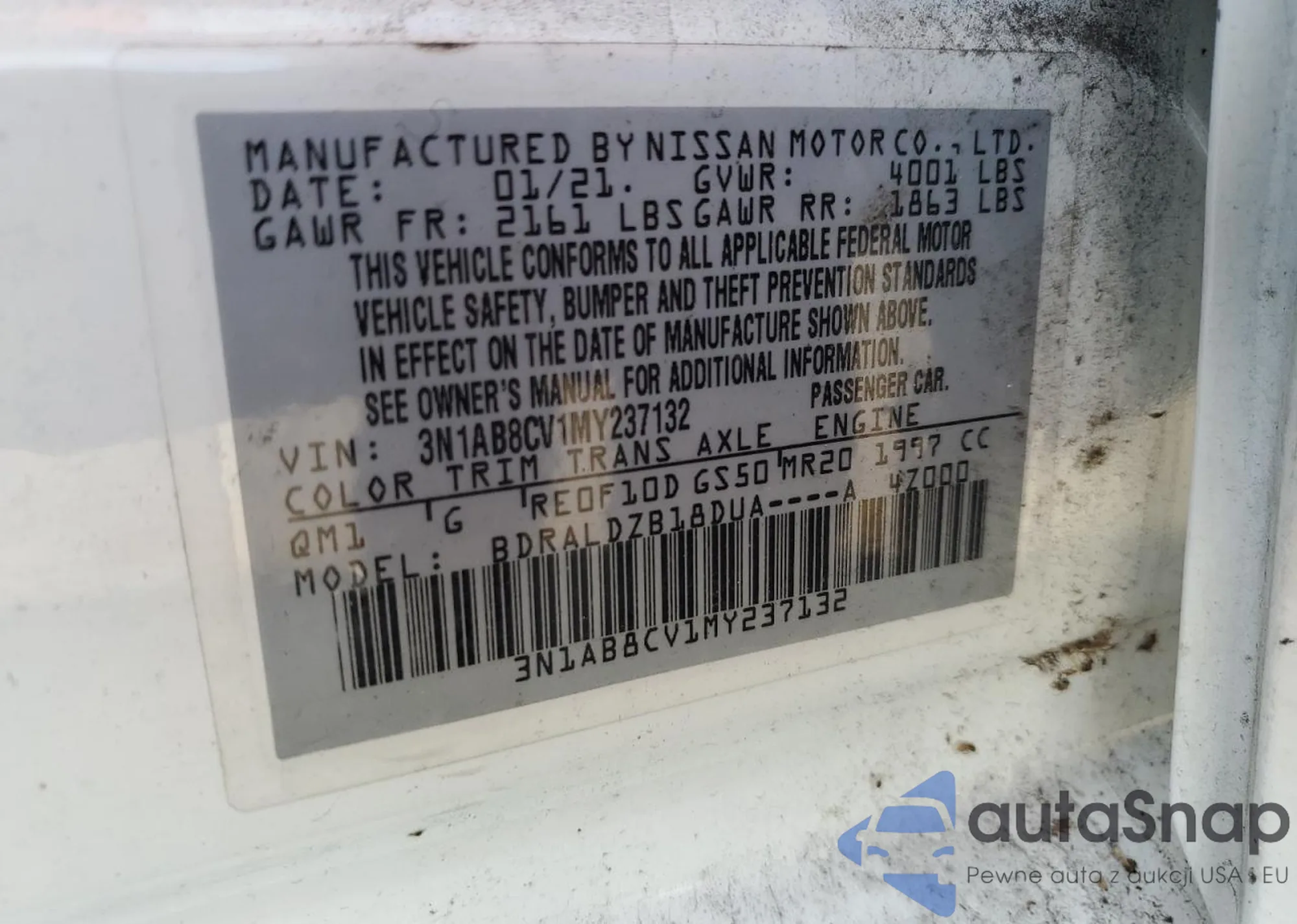 • VIN 3N1AB8CV1MY237132