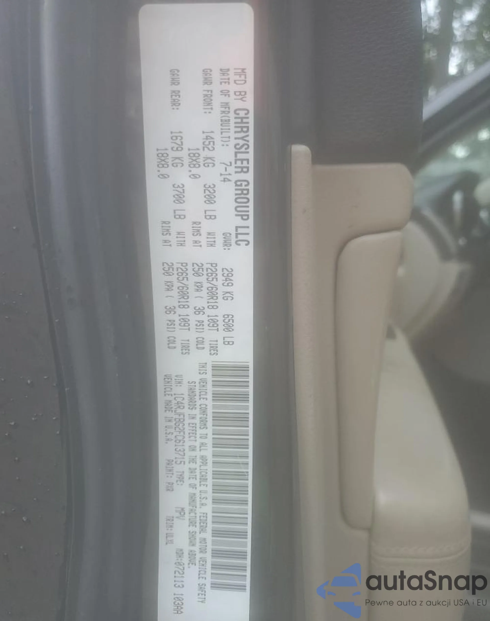 • VIN 1C4RJFBG2FC613715