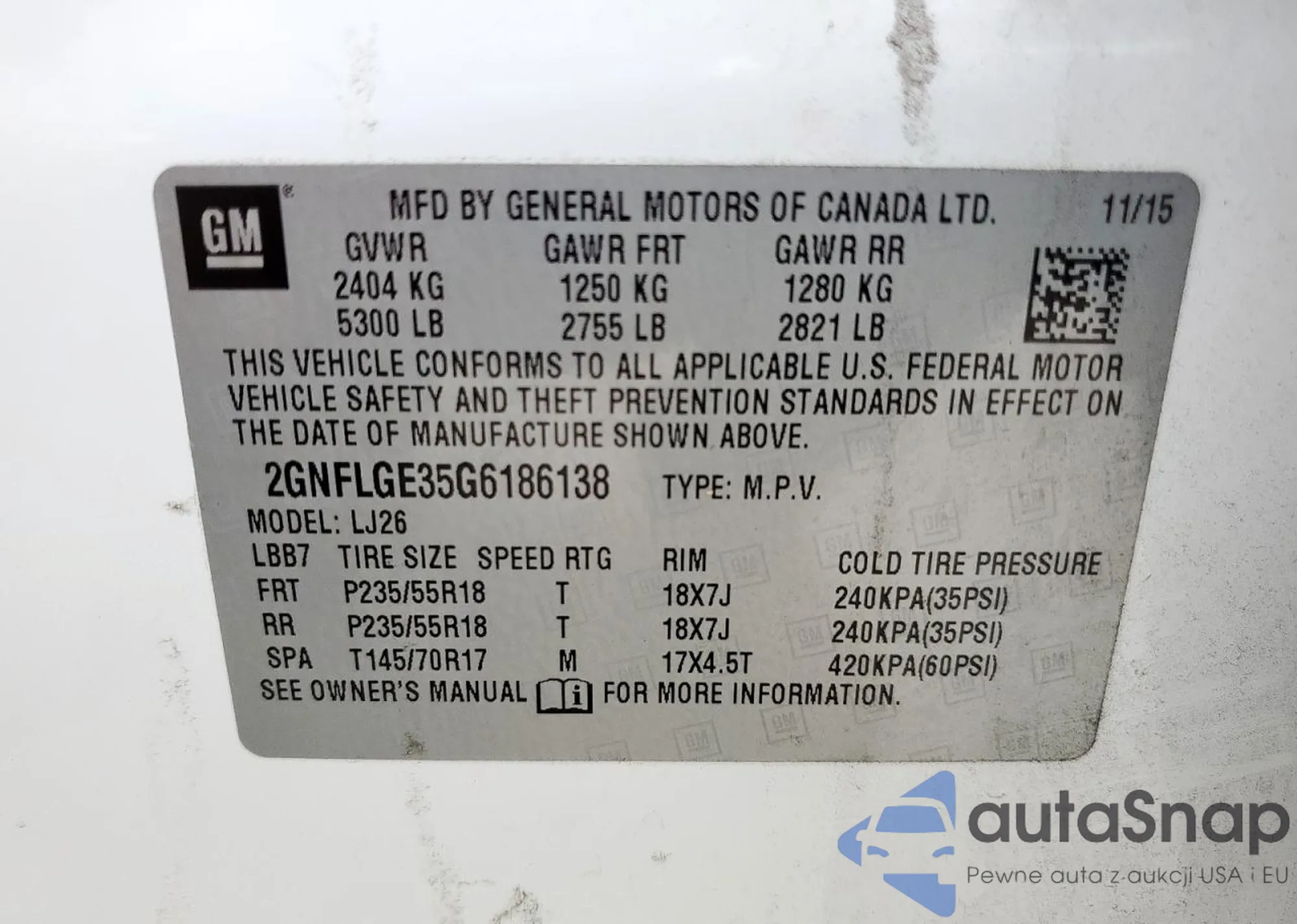 • VIN 2GNFLGE35G6186138