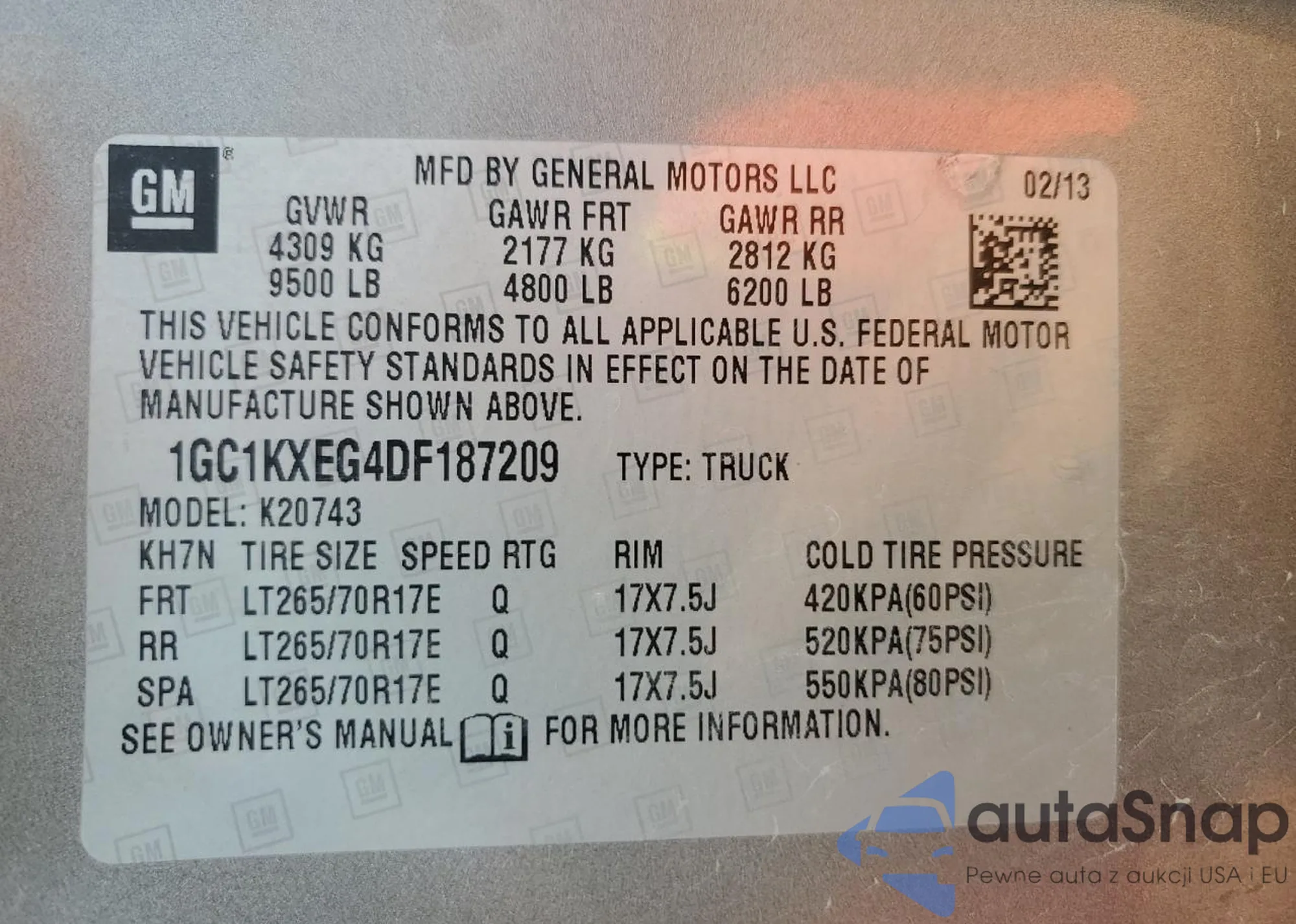 • VIN 1GC1KXEG4DF187209