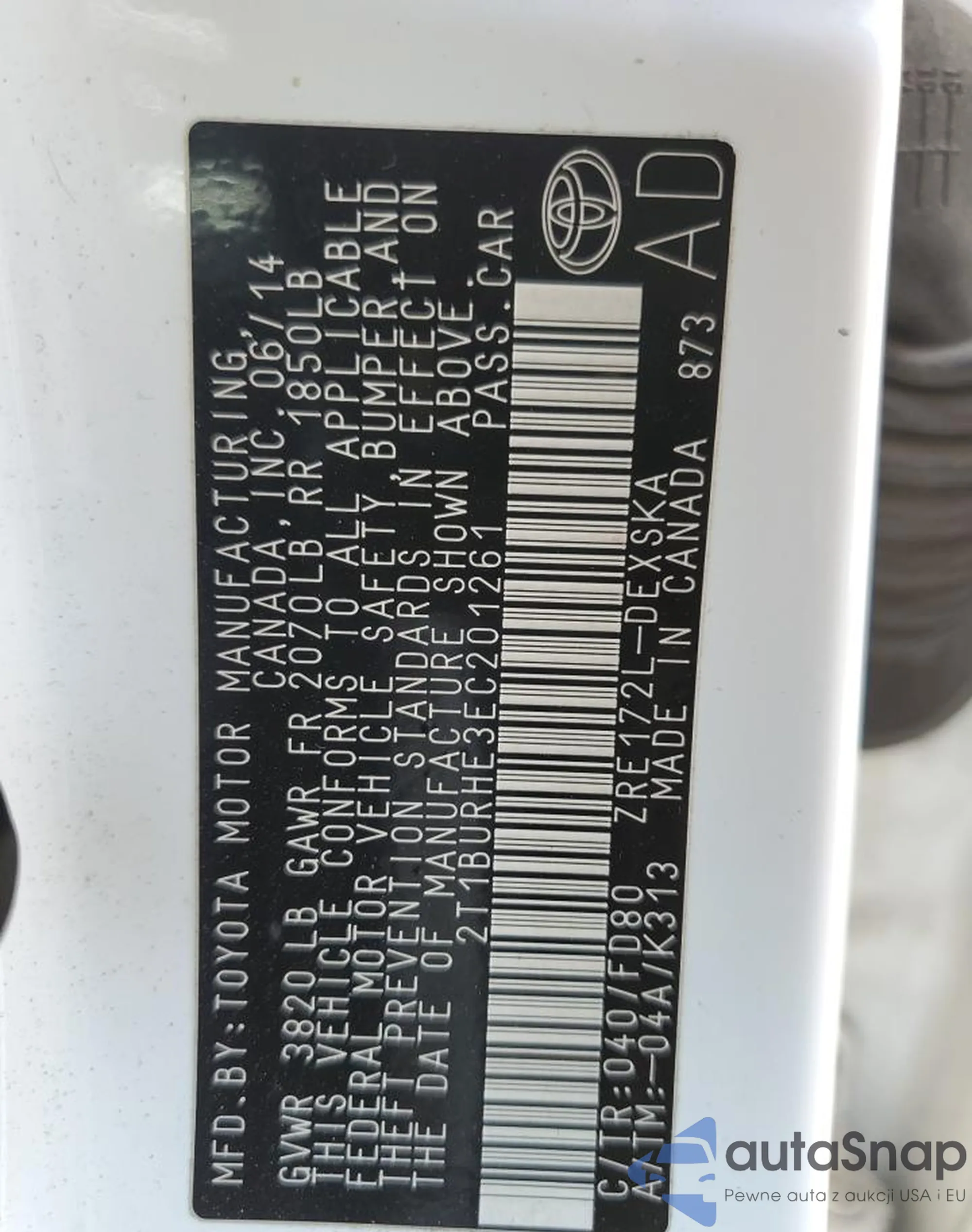 LOT: 55325615 VIN: 2T1BURHE9EC023940