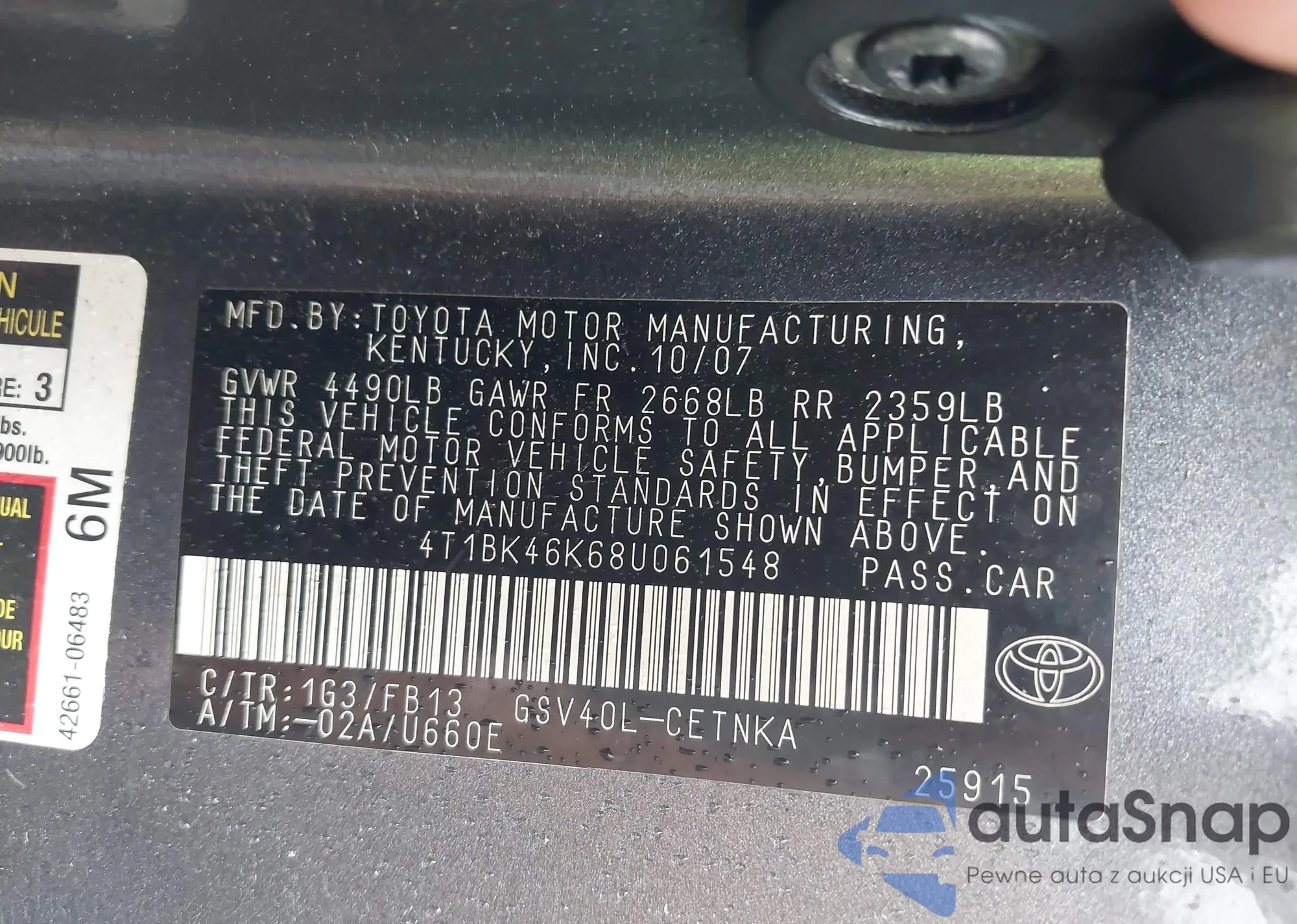 • VIN 4T1BK46K68U061548