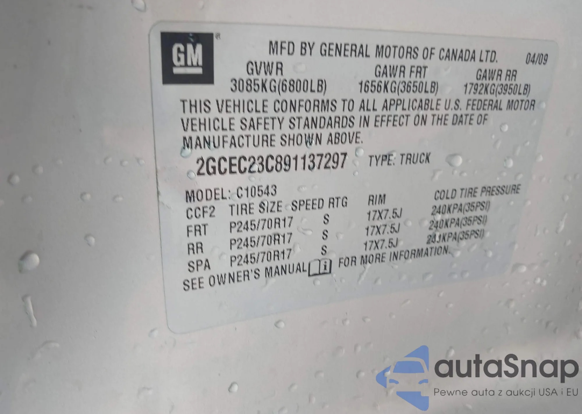 • VIN 2GCEC23C891137297