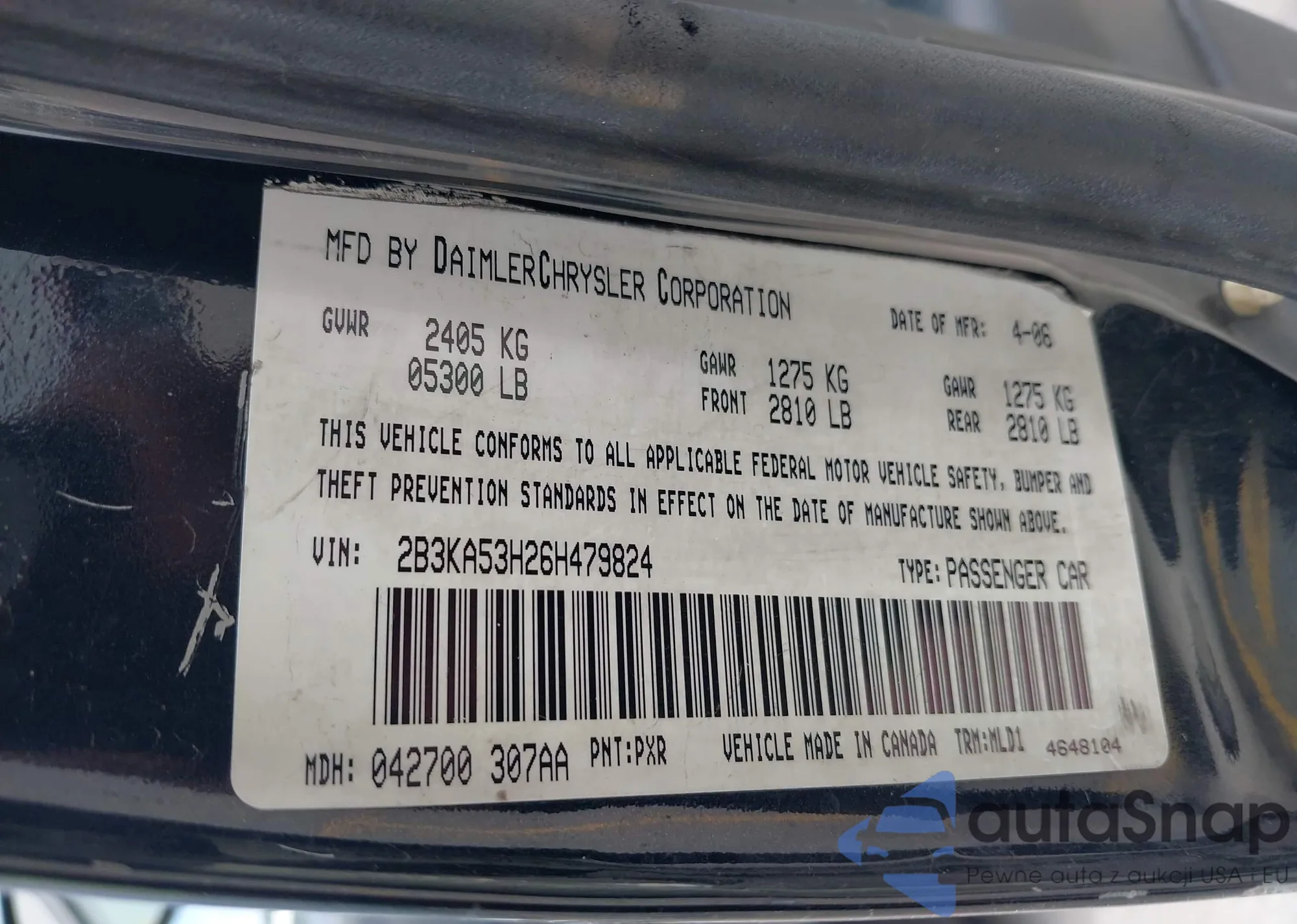 • VIN 2B3KA33V29H627212