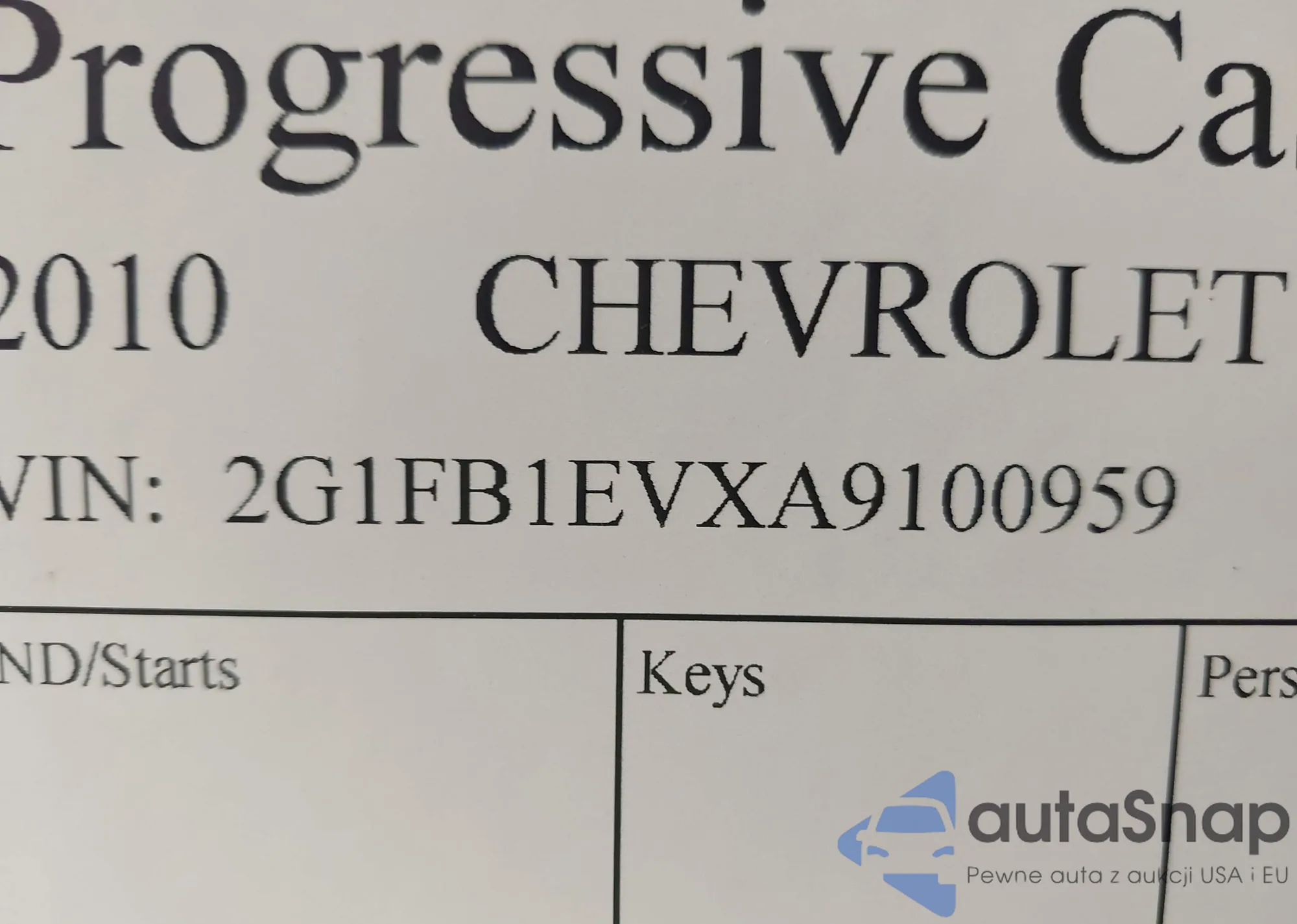 • VIN 2G1FB1EVXA9100959