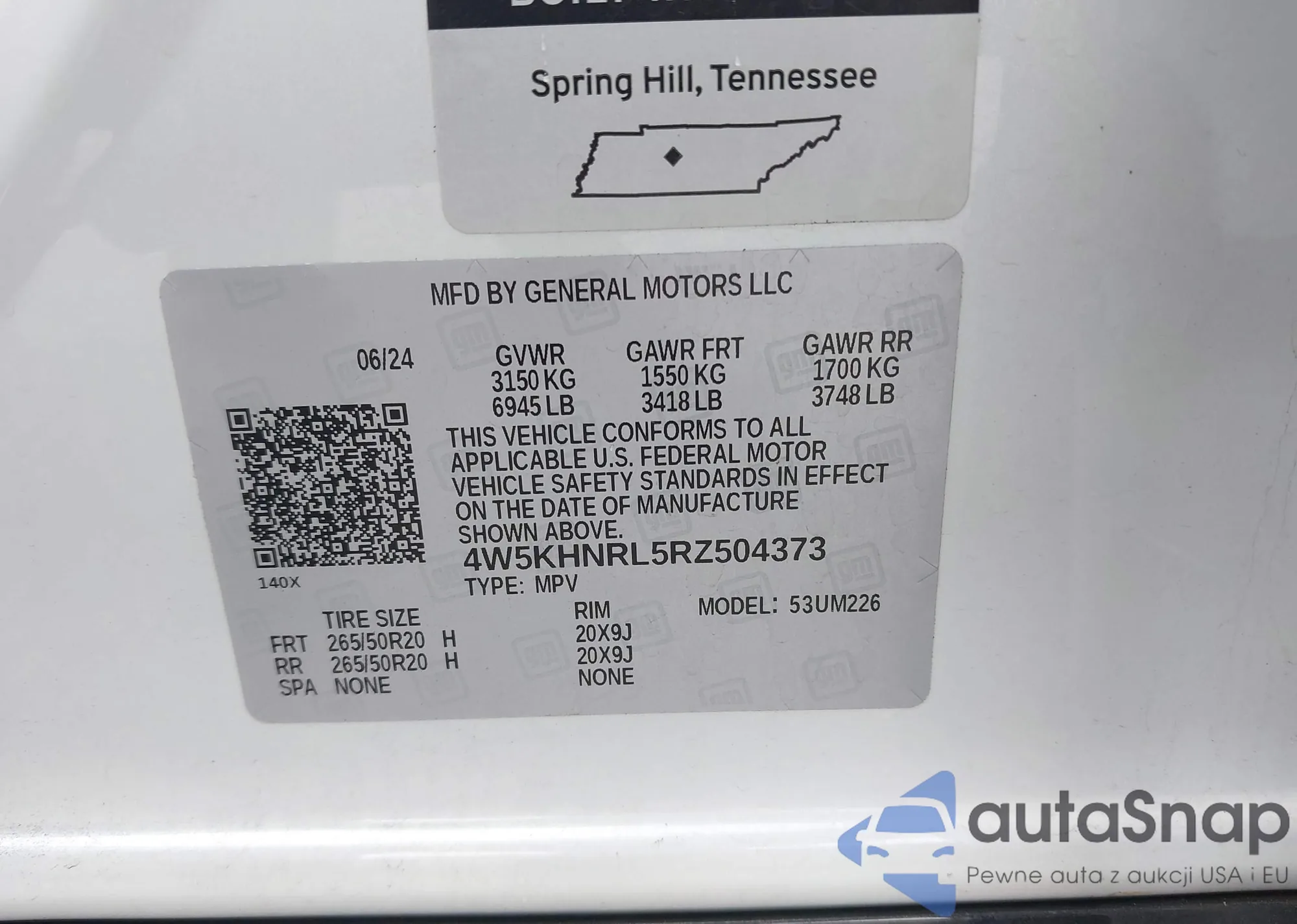 • VIN 4W5KHNRL5RZ504373