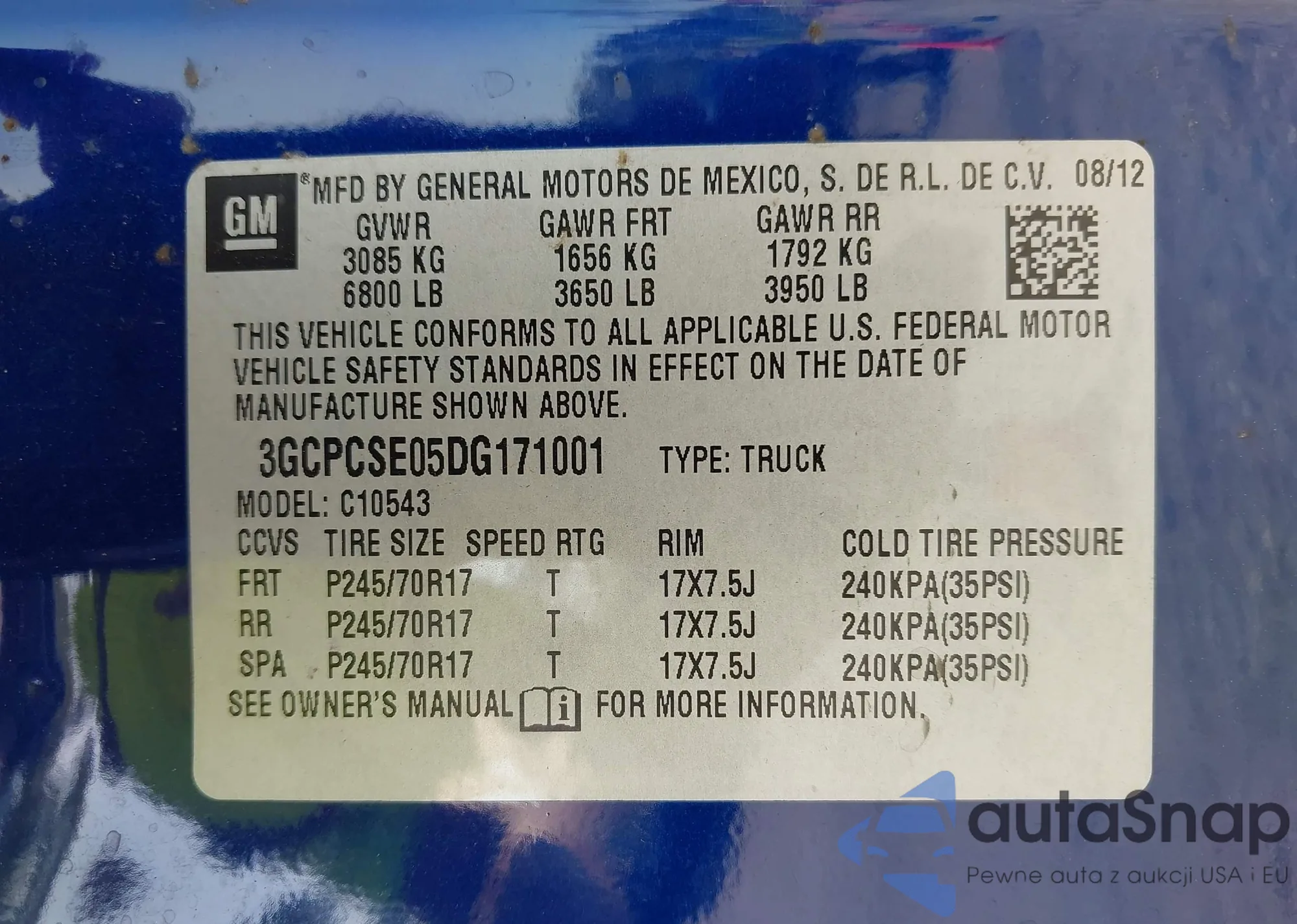 • VIN 3GCPCSE05DG171001
